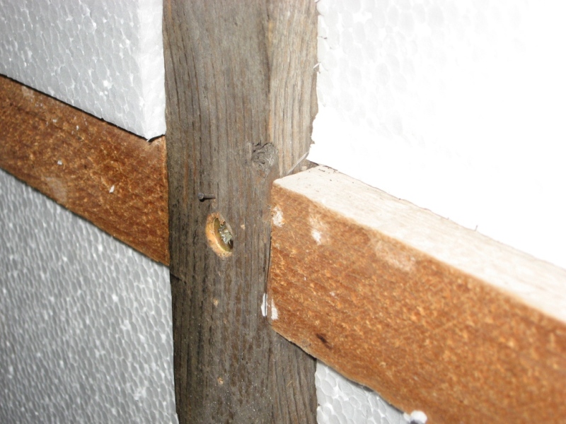 Kada sam postavio stirpor od 5 cm došao je red na 3 cm a tu se javio malo veći problem :nes2 Ispalo je da je dubina 7 cm a ne 8 cm i da mi viri ceo centimetar kada postavim trojku u roštilj. Pa kako rešiti problem? Jednu gredu sam odneo kod komšije stolara da iseče na 13 mm i preko roštilja sam zakucao da roštilj bude ravan sa stiroporom. Sve urađeno i ispalo dobro. Ostaje mi u subotu da postavim gips ploče, sredim spojeve i pregletujem sve to.