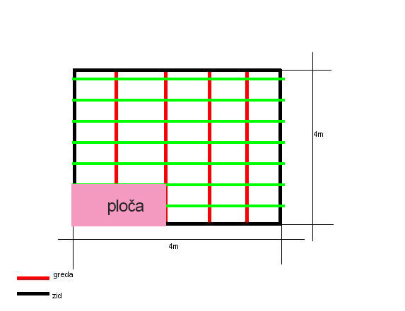 na slici dolje je prikazana velicina sobe i kako stoje grede