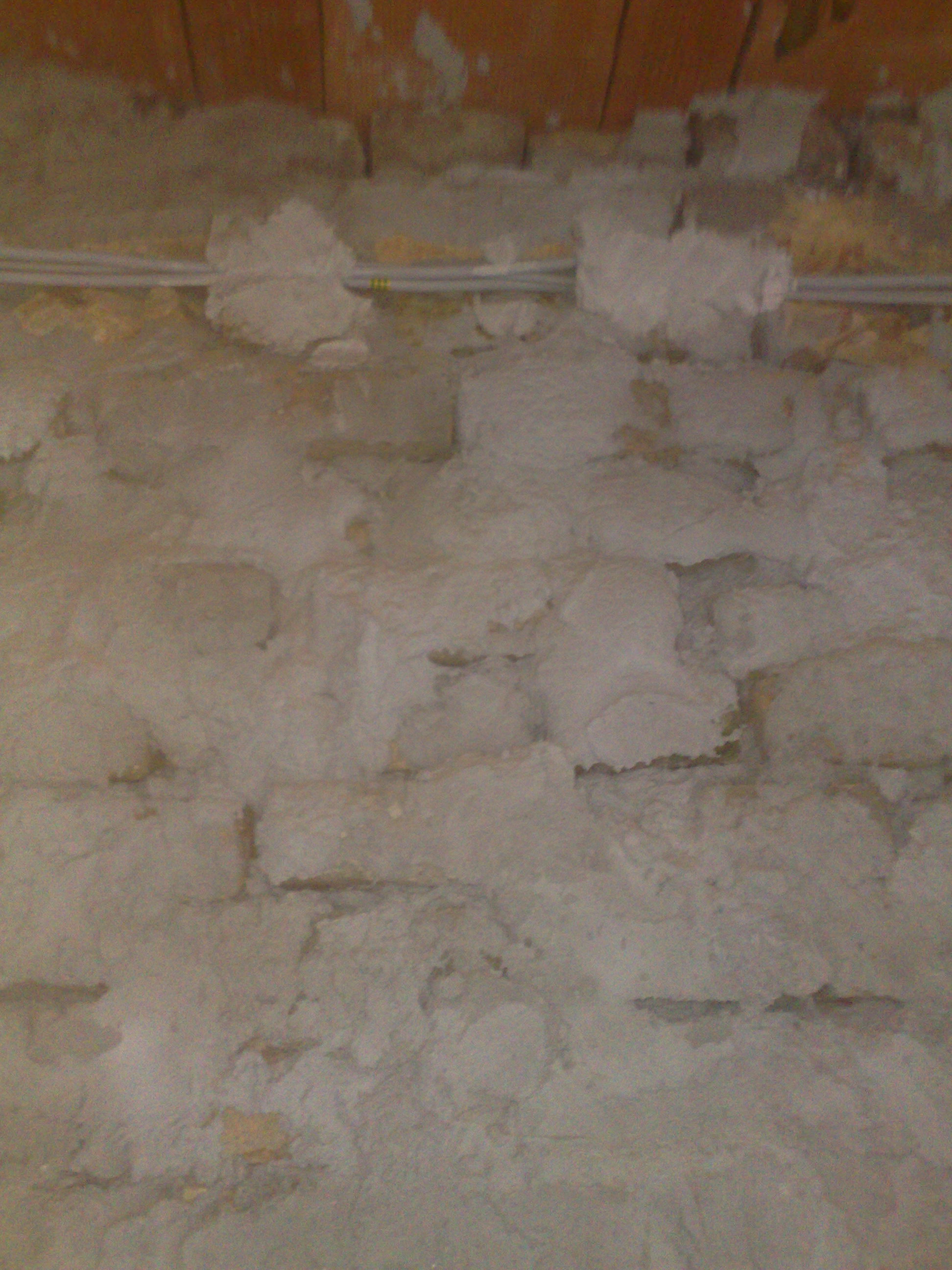 na zid je vec bacena "prva ruka", jos pre par meseci. tako da cigle nisu gole. nisam siguran da li je to 1:1 A frakcija:cement ili nesto slicno, ali to vec ima i suvo je.