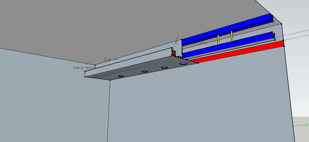 nije mi jasno, jel mozes sa bocne strane da mi das da vidim kako to stoji u odnosu na plafon i zid...nije mi jasno ovako iz pticje perspektive..