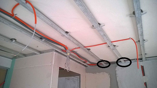 Ukoliko mrkip nije radio ovaj plafon ni on ne moze da zna da li su ovde stavljene visilce ili ne, jer je kutija zatvorena. Sama gipsana ploča nije predvidjena da nosi druge ploce i podkonstrukciju već obrnuto. Sa druge strane ne vidim razlog zasto bezis od toga da stavis dve tri visilice na recimo duzinu od 4 metara, ne vide se , a nisu ni skupe. Na drugoj slici sam ti nacrtao srafove i obelezio ivicu ploče koja je vrlo bitna, a sad da ti malo bolje objasnim zbog cega ti i ja i zvukoljub predlazemo visilice.