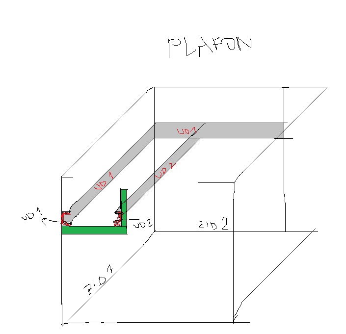 E ovako, evo nacrtao sam nekako...dakle postoji UD1 koji se nalazi na zidu, i UD2 koji ide paralano sa UD1 (crvena boja)...zanima me sta spaja ova dva UD, i da li ce to da drzi dobro plocu koja ide ispod (zelena boja)?