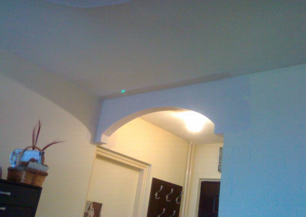 Postovanje svima koji citaju a mogu da mi pomognu!Resio sam da napravim luk iznad sanka izmedju kuhinje i trpezarije moram sa stiroporom ili stirodurom 2*5cm da bi dobio 10 cm,jer mi u Zemunu nema 10cm da se kupi ali zbog kara-plafona mora biti laka konstrukcija,a samo jedan poluluk,bez srednjeg noseceg stuba. Kako da resim problem dizajna,i izrade?svasta sam lepo video na ovom sajtu ali sada sam resio da se prikljucim.Pridodajem sliku prostora sa merama pa ako neko moze da mi pripomogne neka izvoli!Pozdrav za sve!