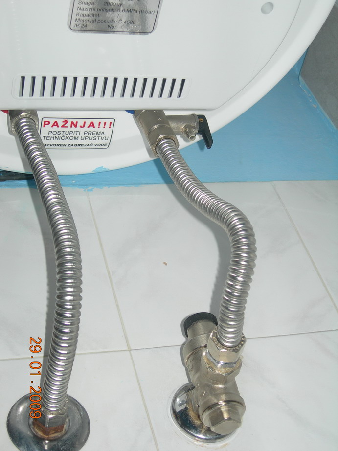 Živim u naselju koje po rečima radnika iz vodovoda ima veoma veliki dolazni pritisak vode, noću i do 13 bari?! Verujem i da je to tako zato što je u jednom priodu u celoj zgradi su ventili "svirala" kao pokvareni hor gajdaša. Međutim moj problem je taj što mi npr sigunosni ventil na bojleru ne procuri dat, već oko 3-5 min po uključenju bojlera! Voda u bojleru nije se ni počela zagrejavati kad počne sigunosni ventil da curi. Posle 15-tak min to curene se zaustavlja. Ovo se dešava svaki put po uključenju grejača od strane termostata. Do sada sam promenio šest ili sedam sigurnosnih ventila, ugradio regulacioni ventil mada sumnjam u negov efekt jer se nalazi na 40-tak cm od bojlera. Čak sam zamenio i bojler, ali se nisam rešio curenja iz sigurnosnog ventila. Ne verujem da se ista stvar dešava i mojim komšijama jer navodno svi su se iznenadili mojom pričom.