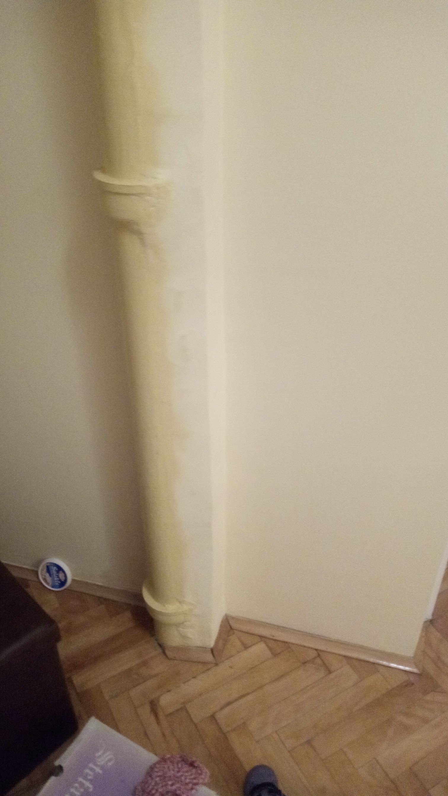 У вашем случају чак и не мора да буде много дебела, битно је да се лепо укроји и залепи тако да површина цеви нема више контакт са ваздухом у соби па онда неће бити ни услова за кондензацију. Ту је једини проблем можда што баш и не изгледа елегантно (црна пенасата маса) али кад не буде кондензације онда може и да се обложи нечим што ће да поправи изглед.