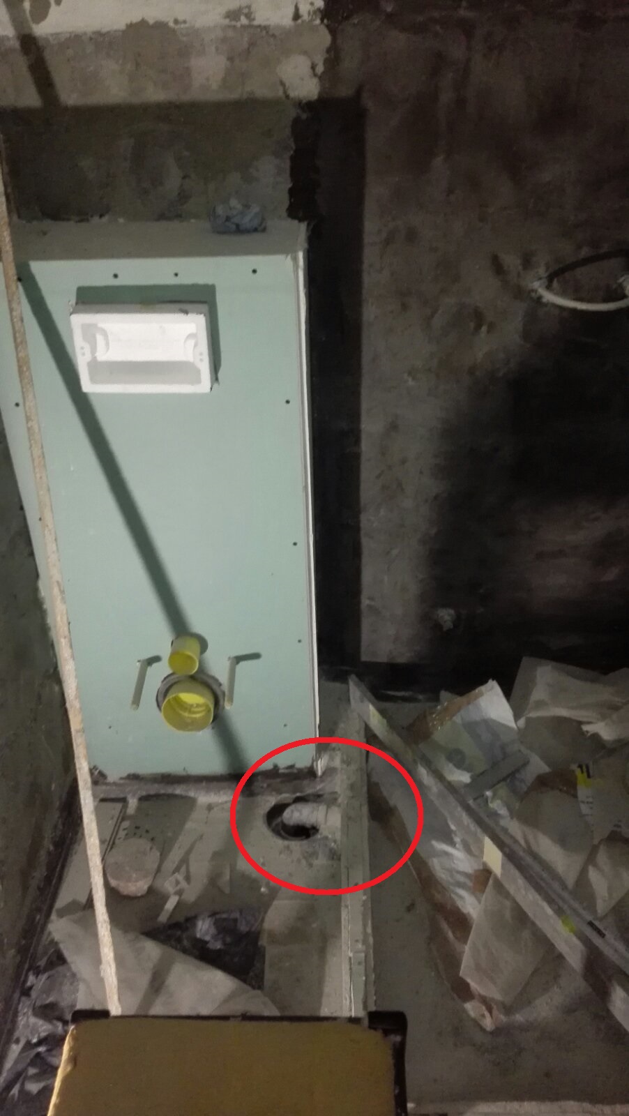 Ова цијев што улази у под је одводна цијев из туш кабине и она је височија од пода.