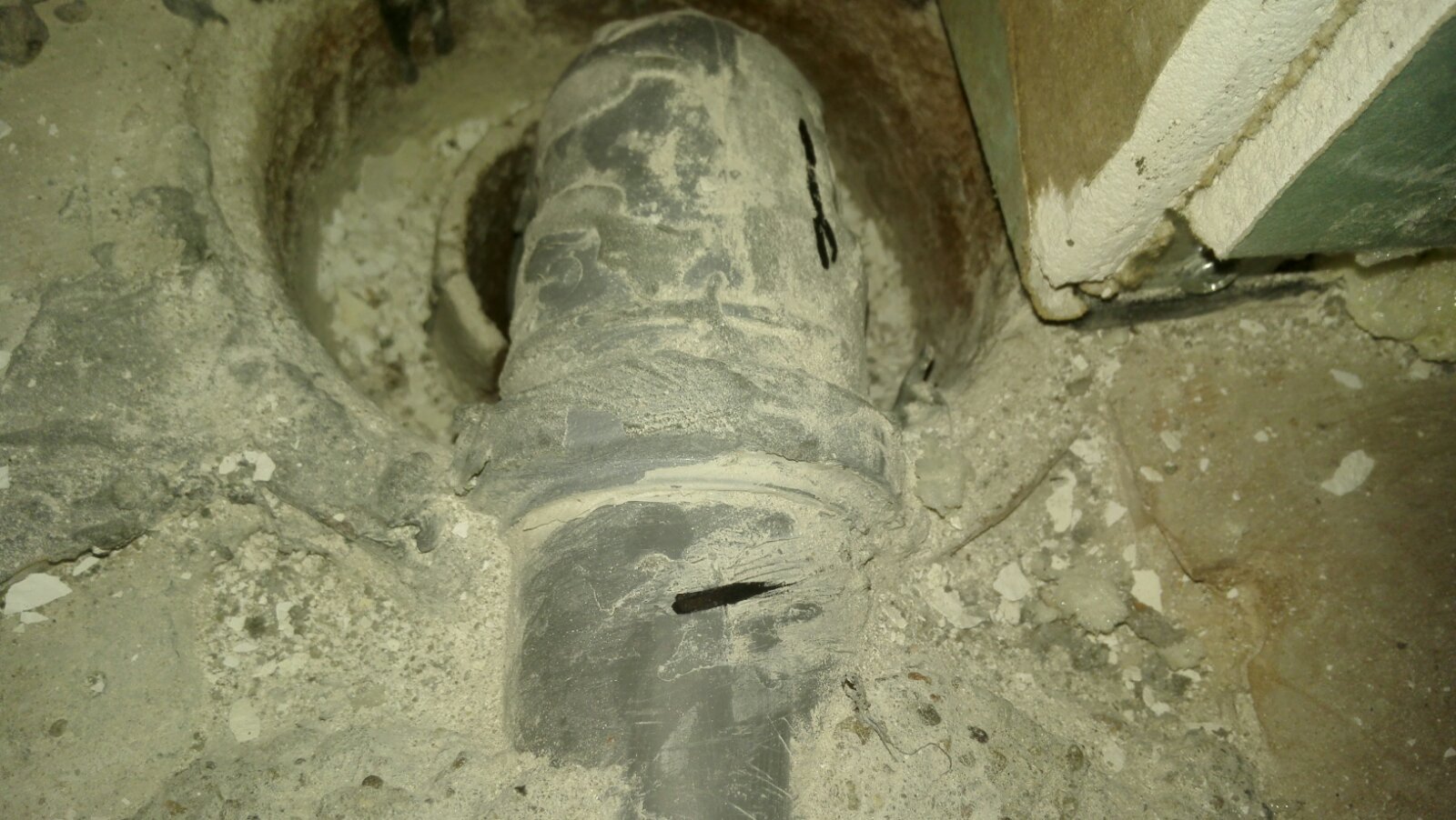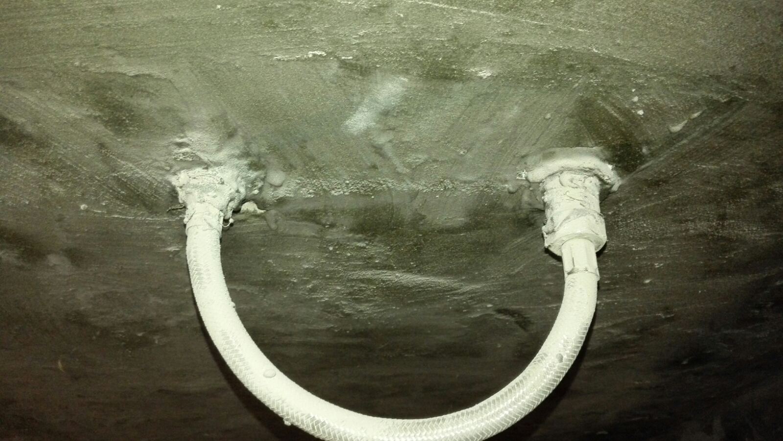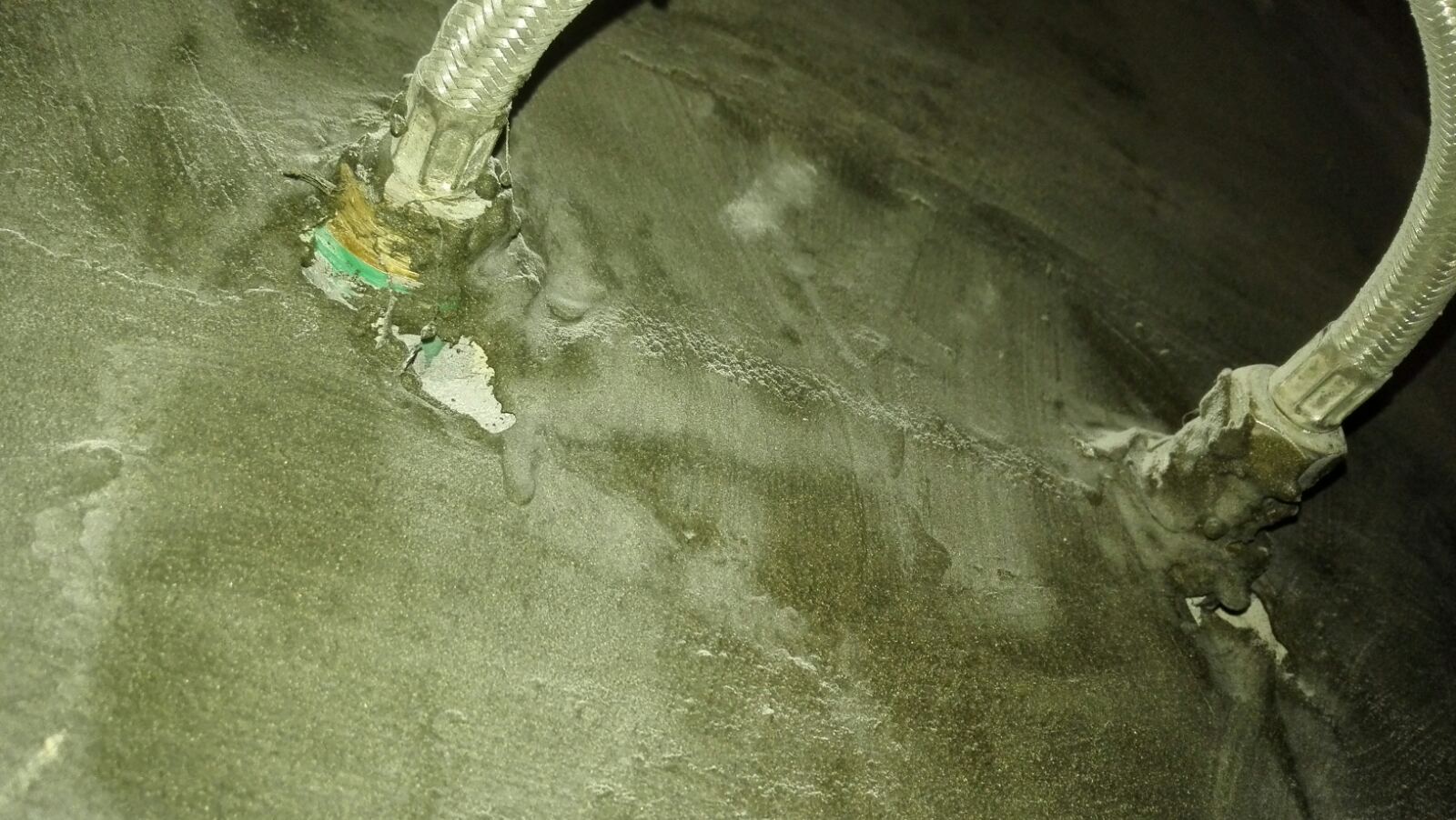 Komšija kaže da je i kupatilo do njega skoro renovirano i "da bi ta voda mogla i odatle da dođe" - skoro 1.3m po horizontali ispod HI u oba stana !?!? Doduše, zid je betonski, a ivice ispucale...