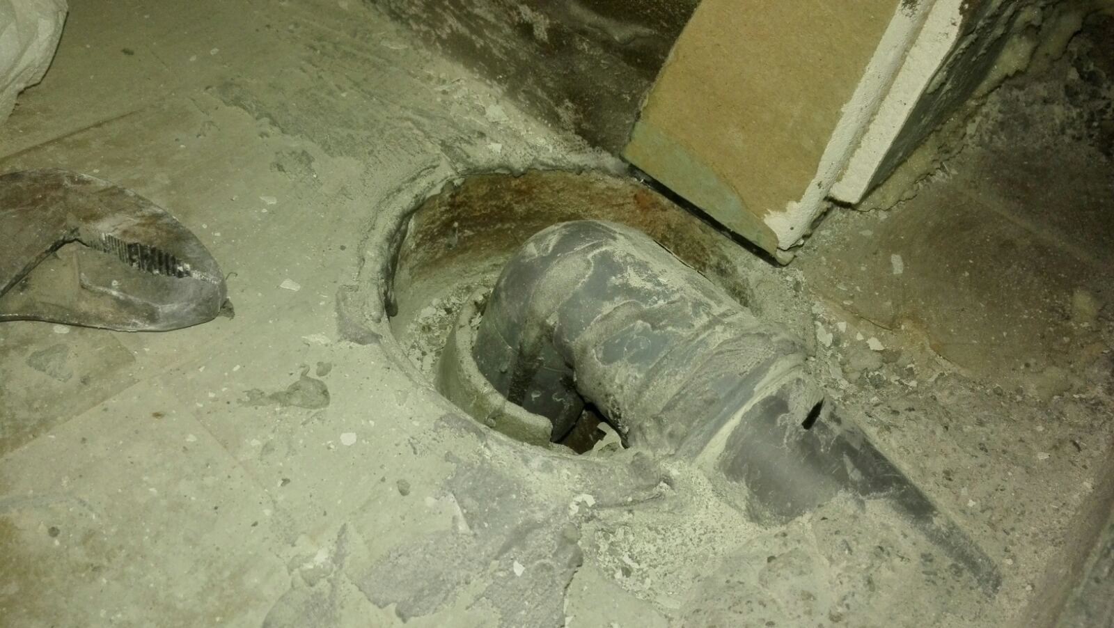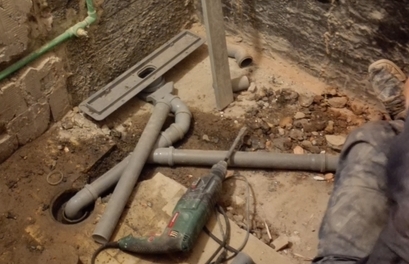 Био је данас водоинсталатер да види. Ријешили смо да развалимо овај бетон у туш кабини и урадимо одвод како треба. Решетку ћемо да помјеримо, а ову да забетонирамо.