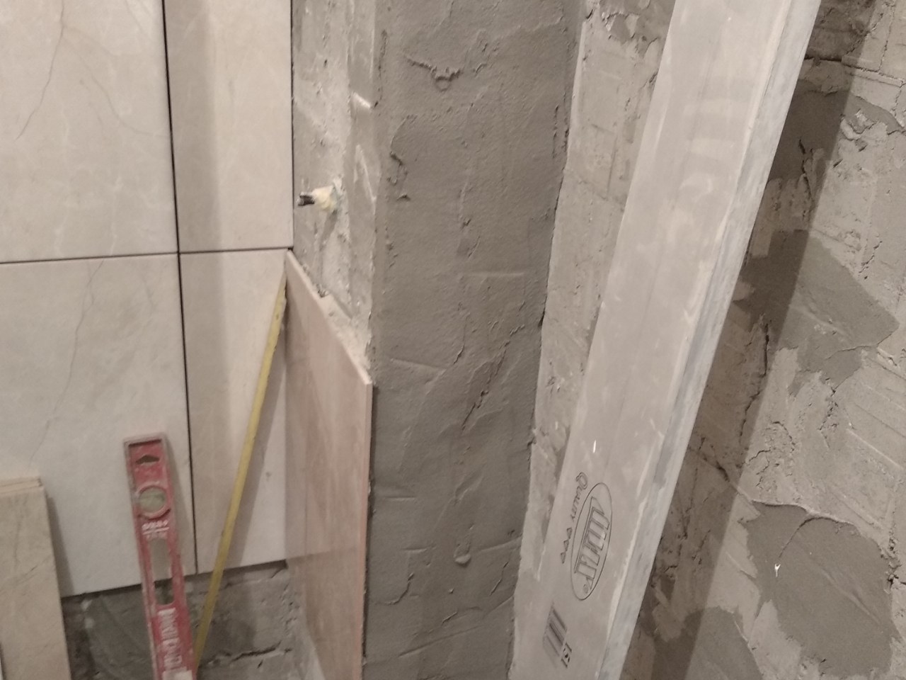 . Што се тиче малтерисања зида, након силних сати проведених на јутјуб каналима америчких керамичара и нула постављених плочица увијек сам за опцију да изравнам зид па онда радим керамику. Ако је зид нераван колико ће плочице бити поравнате зависи од умијећа керамичара и добар керамичар ће то да уради добро, али мислим да ће чак и најбољи керамичар изгубити на квалитету пријањања керамике за подлогу. А ја се трудим да постигнем висок квалитет. Сада има много различитих материјала у грађевинарству који омогућују разне ствари. Користио сам Мапеи Фастпланитоп 330 репаратурни малтер. Он је јак као и љепило за плочице, а наноси се већ од 3 мм дебљине и пријања за разне подлоге као луд. По мени је најбоља и најлакша опција изравнати зид па без компликација радити керамику.