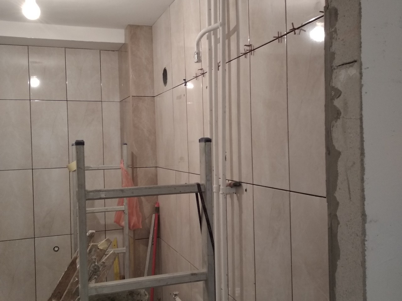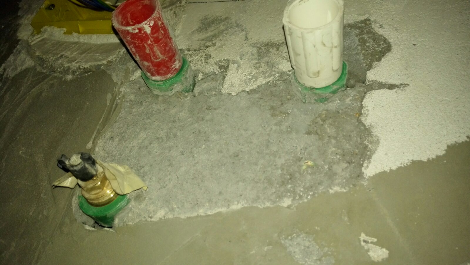 Сад тренутно су ове цијеви сто се виде на последњој слици су забетониране, јер је ту туш кабина.