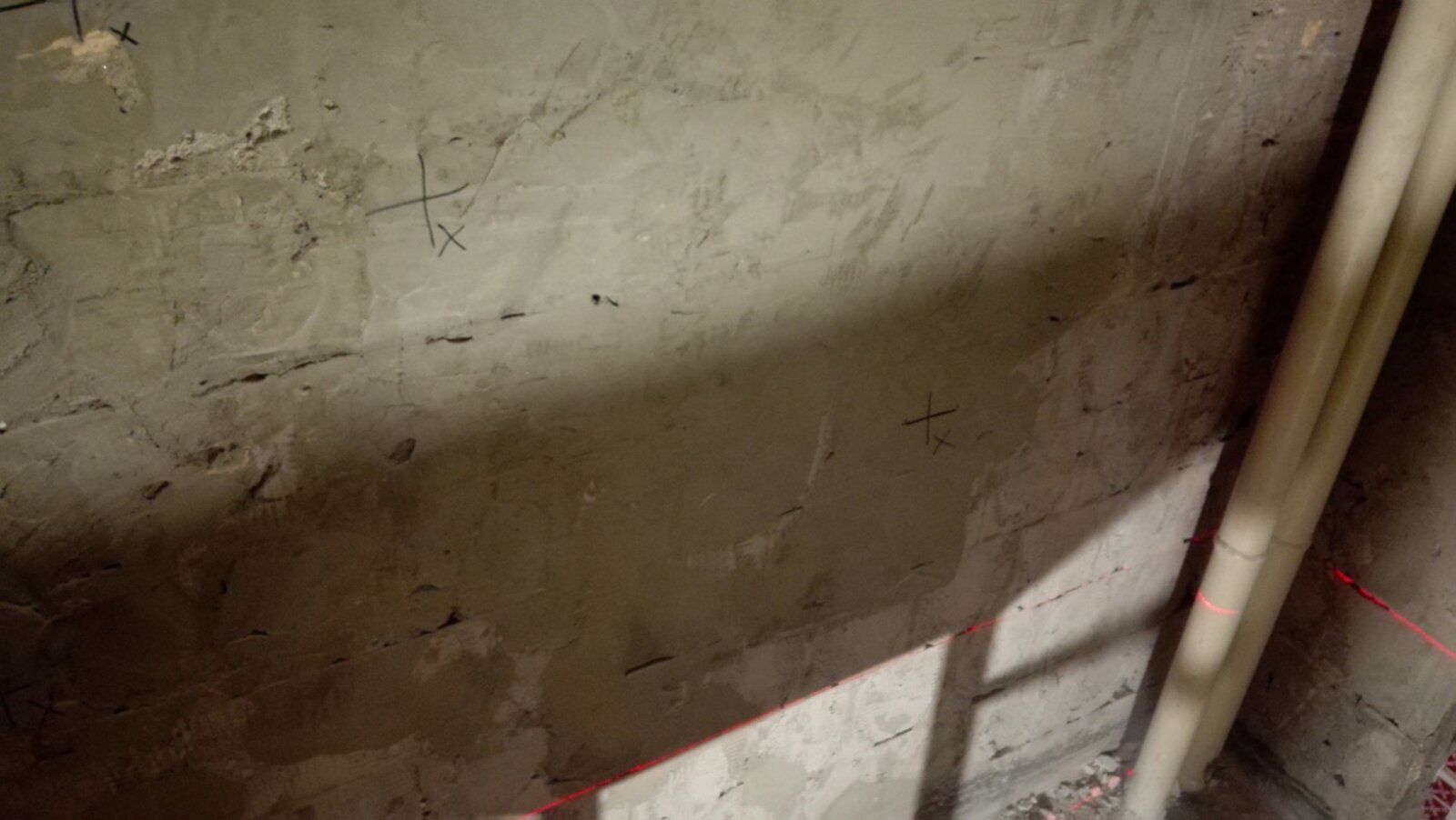@Тензор Овај стари малтер је до пола зида (гдје су биле старе плочице) обичак малтер (без креча) и много је јак и добро прионуо за зид тако да то нећу да одваљујем. Али горњи дио зида је танак кречни малтер који је набачен без шприца и прилично лако отпада, а то ме од почетка брине, тако да ћу највјероватније то да полупам па da измалтеришем.