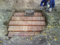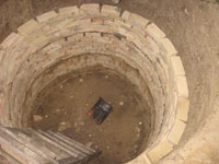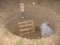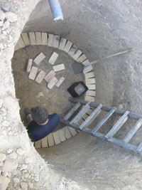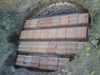 Drugi i svi ostali redovi cigala su slagani po duzini, sa razmacima izmedju cigala od otprilike 5-6 cm, da bi kasnije i na tim mestima isticala voda u zemlju. Cigle su samo slagane bez maltera, a otvori su popunjavani zemljom koja je iskopana iz jame i lezala svuda unaokolo. Prostor izmedju cigala i zida jame je takodje zatrpavan zemljom, i strogo se vodilo rachuna o tome da zid "ne bezi" na unutra, u jamu...