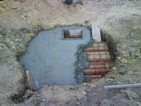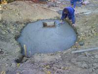 ... u iskopani kanal je sipan malter (il' je beton, uglavnom smesa cementa i sljunka) da bi se krenulo sa zidanjem...