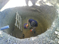 Pocelo je kopanjem, kanalizacionog voda i odredjivanjem mesta gde ce se kopati septicka jama. Precnik rupe je 2,3 metara.