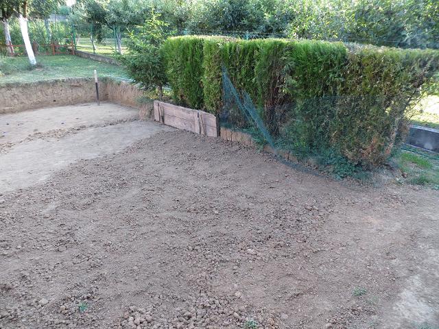 Početkom septembra treba da betoniram dvorište. Izvršen je iskop cca 30 cm i nasipanje krupnog tucanika i šljunka. Površina je 30 M2