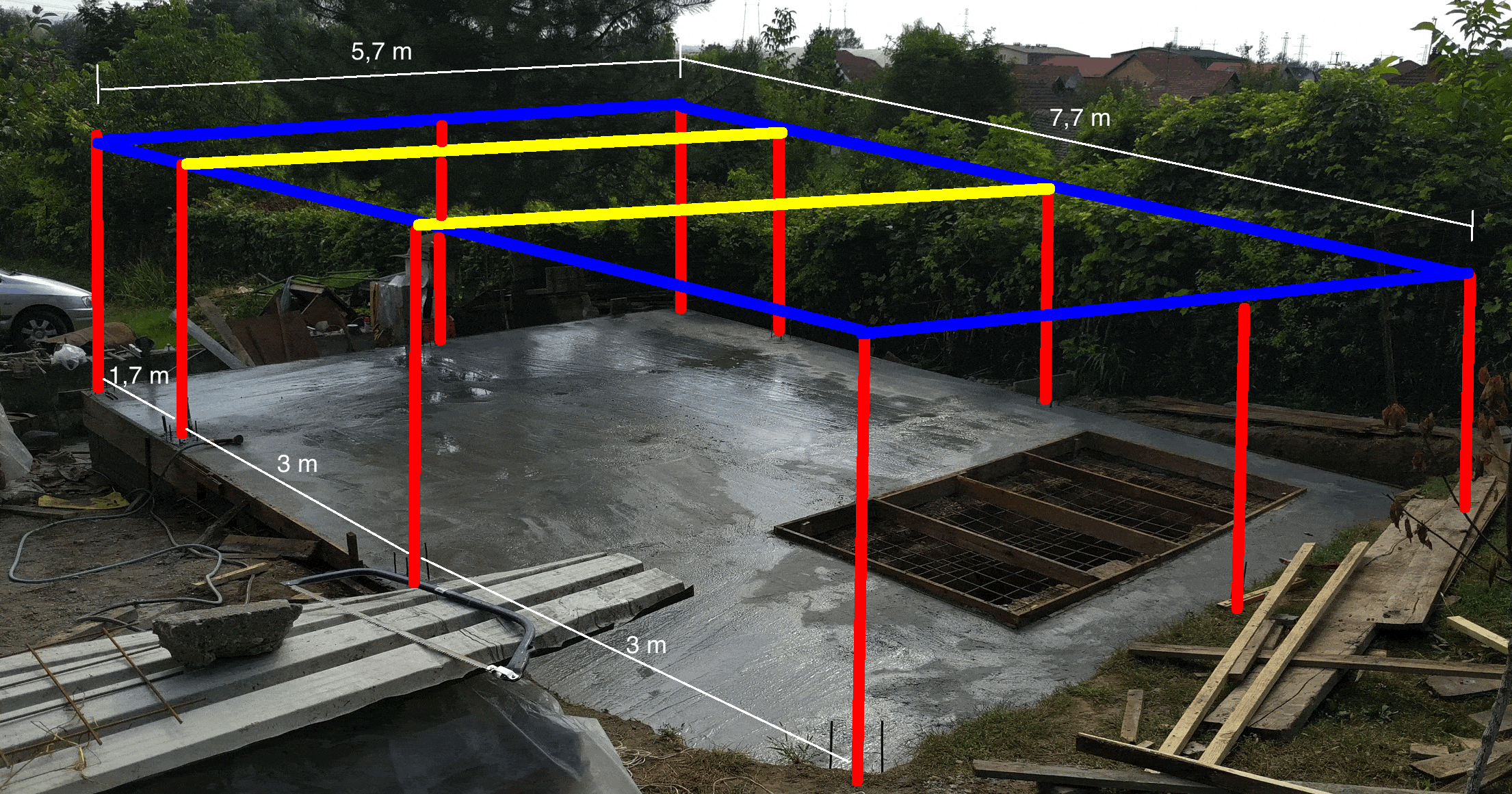 Sa mojom garažom sam stigao do ploče, a pošto mi je i novca ponestalo, morao sam malo da pauziram sa radovima, par dana... Danas mi je stigla armatura za dalje, sutra vezujemo i šalujemo jedan stub u sredini ploče, tako sam bar planirao...