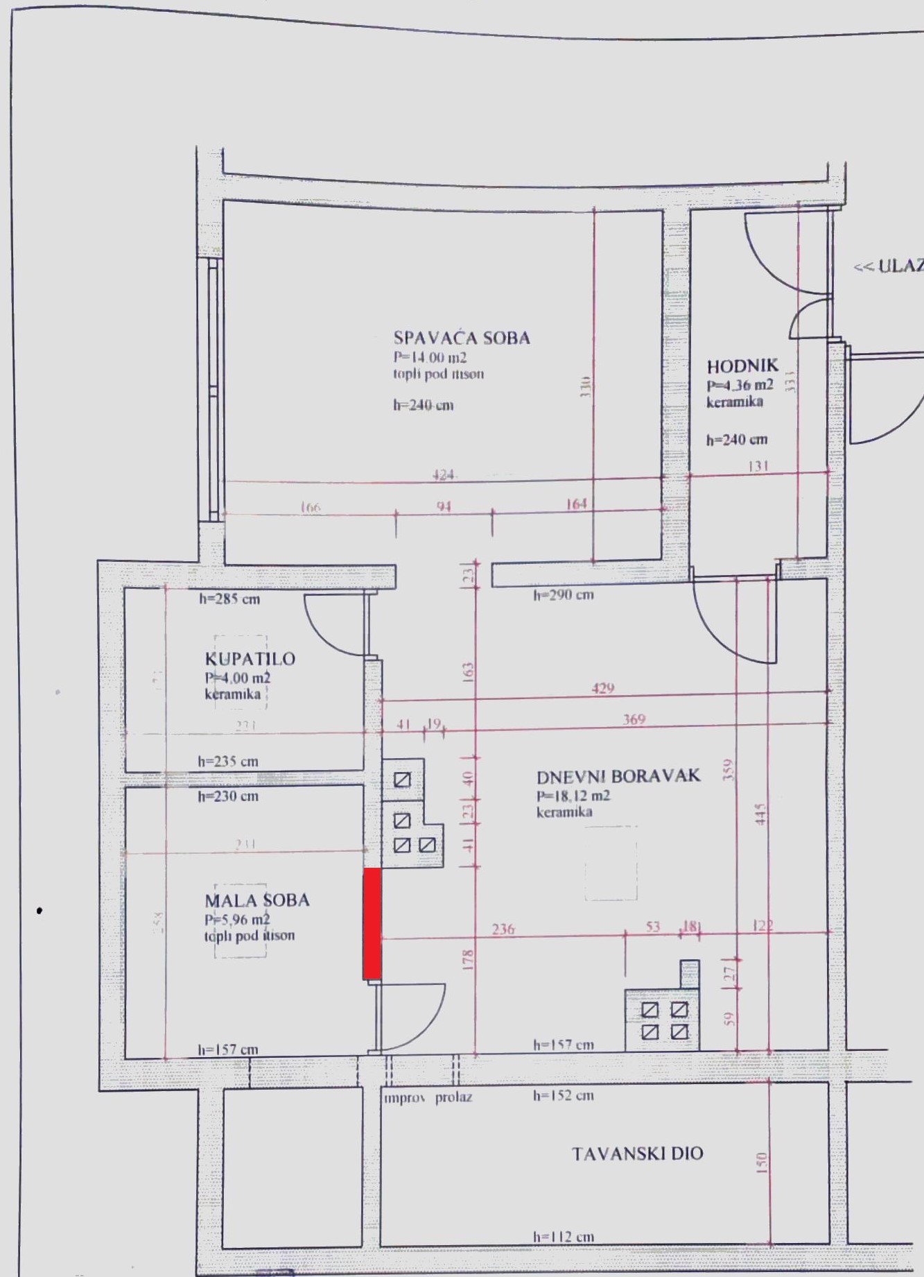Ja sam to prvobitno zamislio sa izbijanjem prolaza od cca kraja otovrenih vrata prostorije 4 pa nekij 70 cm da bude.( tacno gde sam obelezio) Ostaak zida od nekih 1m bih iskoristio u prostoriji 5 i samo napravio coklicu i video bi sta bi stavljao neku ugradnu ili samo tus zavesu. Jer trenutno u prostoriji 4 imaju wc solja , lavabo i boljer. Zadrzao bih taj raspored. Zazidao vrata na prosotriji 5 , imalo bi mesta za ves masinu i sta znam. Tako da bi imao prozor u tus kabini , a cevi od kanalizacije i vode prolaze kroz obe prostorije, i razvoda od kablova za struju je izmedju obe prostorije. Clanova trnutno nema mnogo ali moze biti