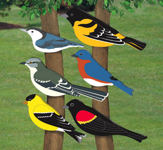 Ofarbaš pola u zeleno (kao trava) pola u plavo (kao nebo) i zalepiš,ušrafiš ovakvu tarabu sa sve ptičicama