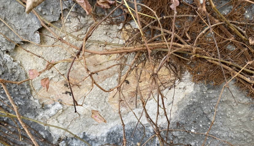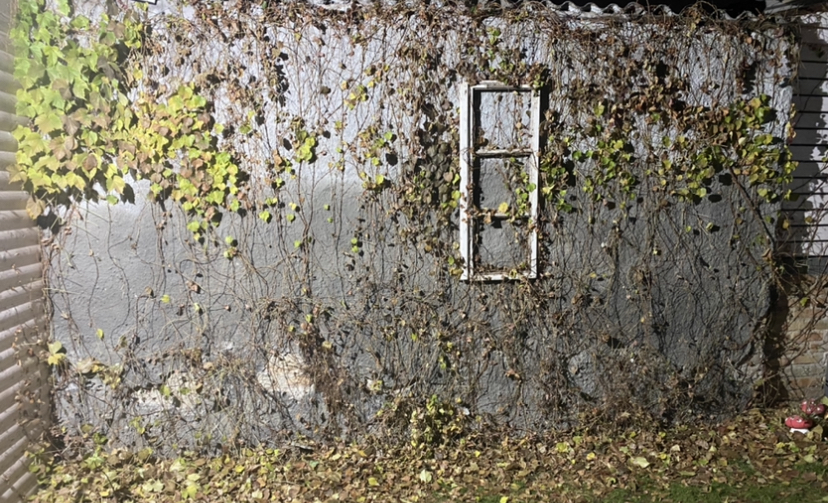 Na jedan deo dvorišta se naslanja komsijska šupa. Izidana od cigala. Na njoj je krenula vlaga da se penje i došla nekih metar iznad zemlje. Prethodni vlasnik kuće je hteo to da malo sakrije i nabacio je neki malter. Ne znam tačno šta. Malo je čvršće od maltera... Ali i to je povuklo vlagu, sto od zemlje, sto od tog zida, pa se dosta odvojilo od te cigle i deluje da neće još dugo opstati posto već puca na mestima i otpadaju komadi.