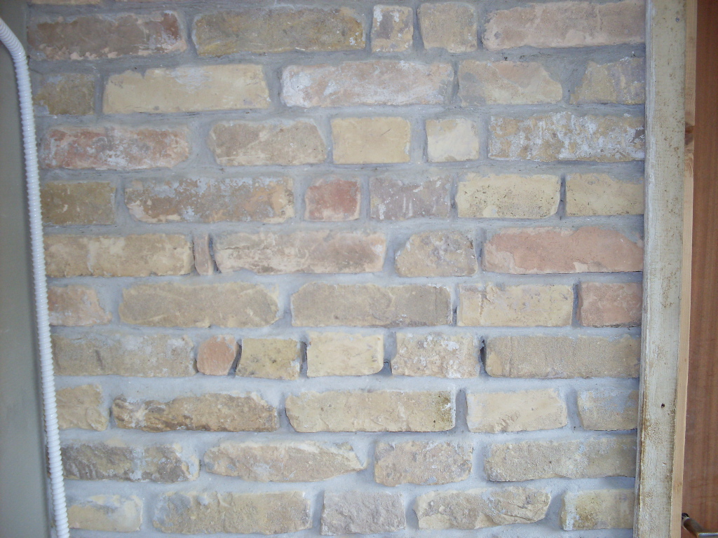Trebaloje da pre zidanja cigle namažeš sa dve strane (one koje će ti biti lica) sredstvom protiv lepljenja maltera (koristi se pri fugovanju), ovako gde god ti je prilikom zidanja procurela voda iz maltera cigla je to upila, nije čak morao ni malter da prsne, dovoljna je voda iz njega, ona je obojena. Ono što ja mogu da ti preporučim za tvoju majstoriju je roto četka, ali ne ona koja ide na brusilicu jer je suviše brza, suviše skida, ato bi uklonilo svaku poentu zida od stare cigle, već ona koja ide na bušilicu, da možeš da joj kontrolišeš brzinu. Pa skidaj dok ne prođe sivo. Moguće je da je to upilo iz prethodnog maltera... Stavi roto četku na bušilicu pa probaj na jednom delu, da vidiš koliko je upilo. Kad ga budeš fugovao OBAVEZNO sredstvo protiv upijanja! Eh da sa roto četkom obavezno zaštitne naočare, jer iglice iz nje lete ko đavoli. Pa sa srećom. I nemoj da je nagaziš inače će da ti zaore ciglu (stalno je pomeraj) koja će onda da izgubi svoj oblik i reljef koji je dobila godinama. Samo nežno i gde baš moraš više, onda gledaj da ga nekako uklopiš u reljef.