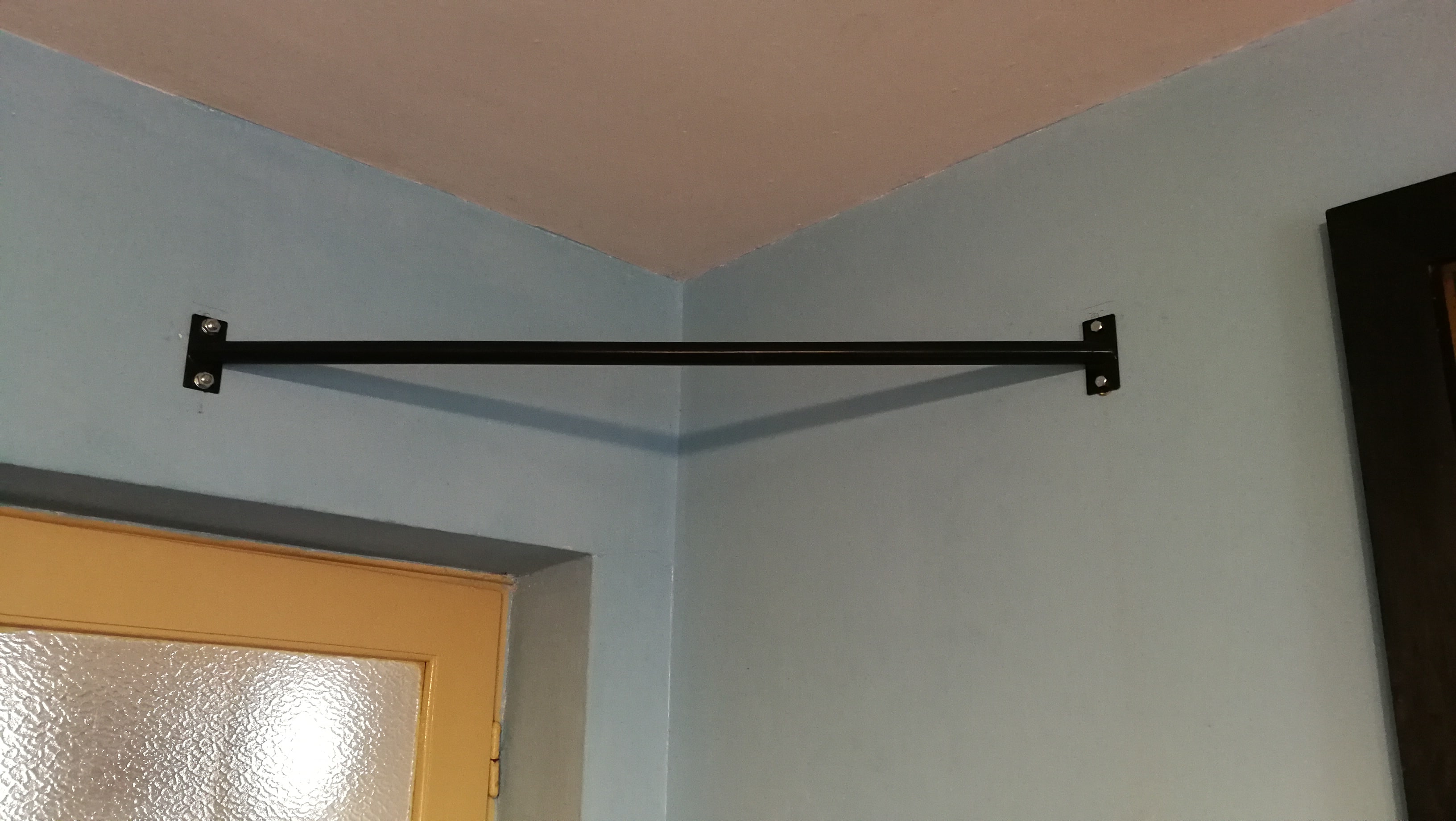 Hoću da montiram vratilo za zgibove u ugao sobe. Montira se sa po dva šrafa sa svake strane, vidi se na slici kako to treba da izgleda.
