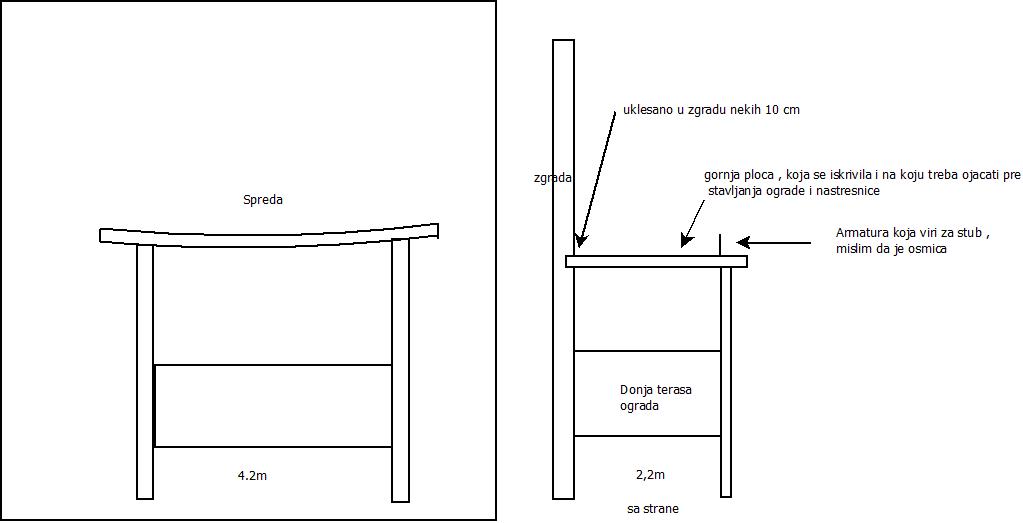 Terasa ima dva stuba sa jedne strane a sa druge strane ulazi u zid zgrade nekih 10 cm