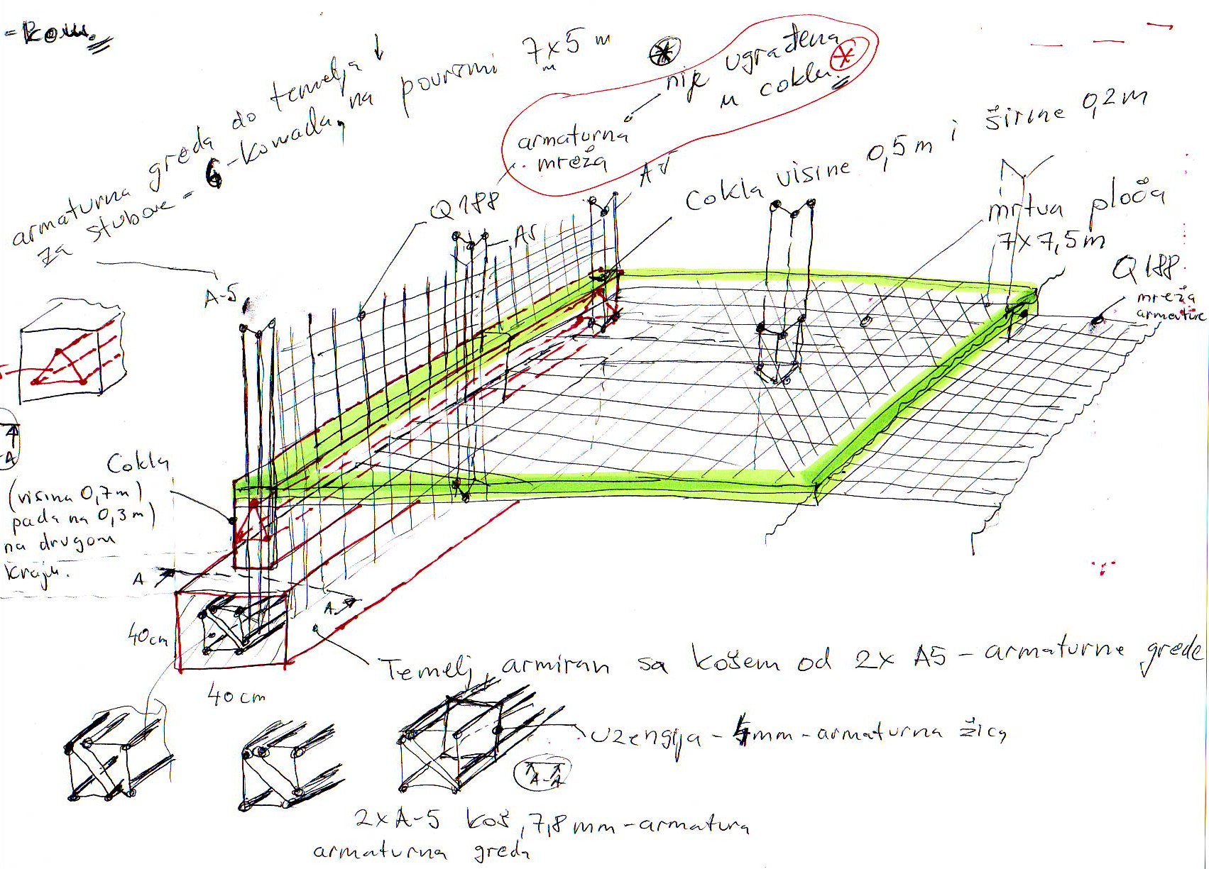 Sve ovo je povezano mrežama Q 188, 5.komada i saljevena ploča debljine 10 do 12 cm.