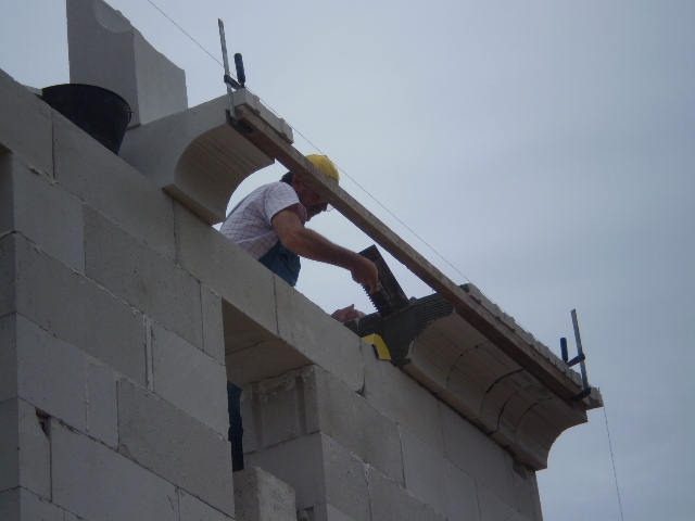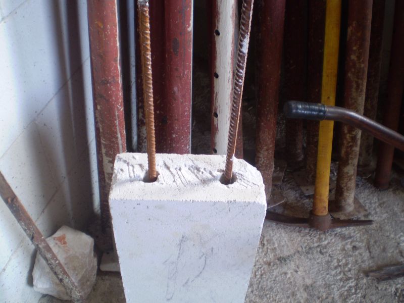 Kad poravnate ytong blokove nalijte rijeđe ljepilo za zidanje u rupe sa rebrastim čelikov i drugi dan nadvoj je spreman za montažu.