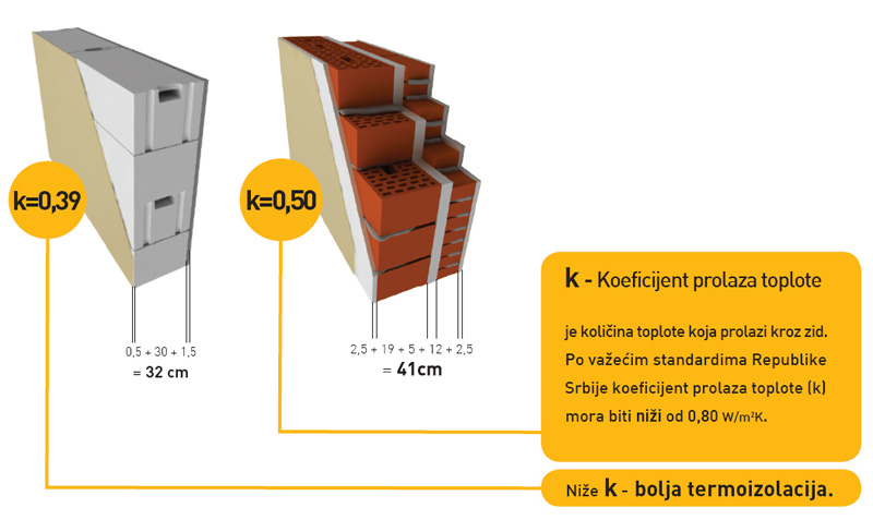 Naime, blokovi sa kruznim otvorom ne zahtevaju nikakvu dodatnu termoizolaciju, dok je kod blokova sa kvadratnim otvorom bila potrebna dodatna termo obloga u takom sloju.
