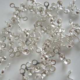Ako ogrlice nižeš na običan najlon ( ja najčešće koristim njega) onda možeš da iskoristiš ove završetke koji izgledaju kao dve polu lopte . Provučeš najlon kroz rupicu izmedju te dve polu lopte, vežeš čvor i to možeš i par čvorova da budeš sigurna da se neće najlon izvući. Dobro je da kaneš na čvor malo super lepka i klještima zatvoriš da se čvor ne vidi. Posle je lako, staviš jednu običnu alkicu a zatim kopču. Sa druge strane stavi samo alkice.
