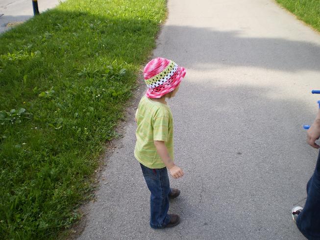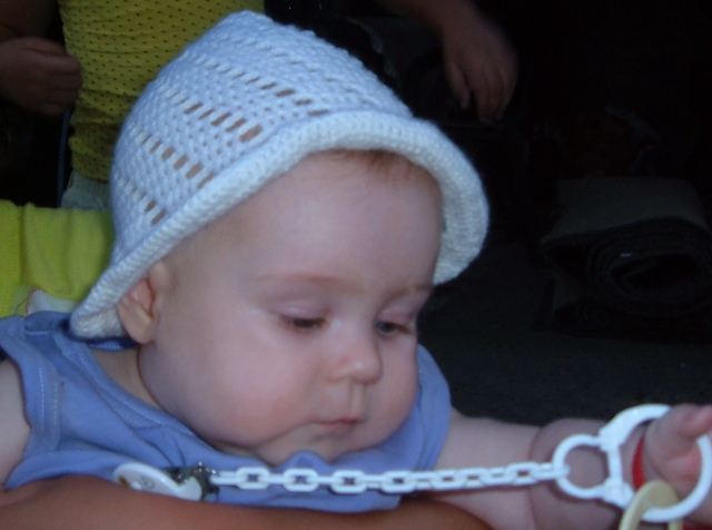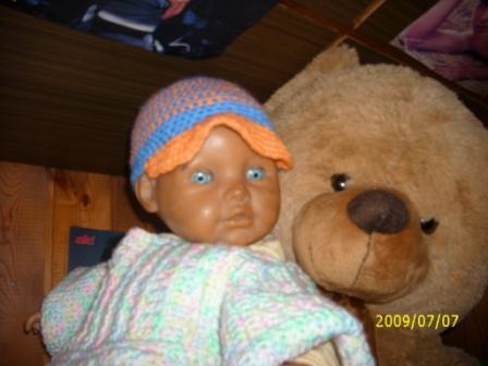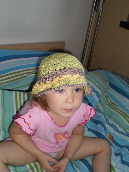Ajme,ja sam ti na mail napisala da si manji trebala pokloniti manjoj bebi,al di ćeš manju od ove!Medena je!A i šeširić joj lijepo stoji!Sad svake sezone po jedan malo veći od prethodnog!Dosta se brzo hekla,čak i ti koja si morala čitati šemu,napravila si za jedan dan,zar ne?Sad brzo u park i malo se pravite važne!