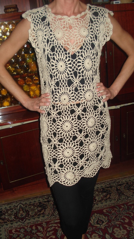 Tunika je zbilja savršena. I baš su oni 'talasići' dole odlični. Dobro si se snašla sa završetkom oko vrata, sigurno i bez lastiš-konca? Meni jedino ne odgovara ( kada bih sebi radila) talasavo oko ruku. Mladi mogu sve, blago njima....
