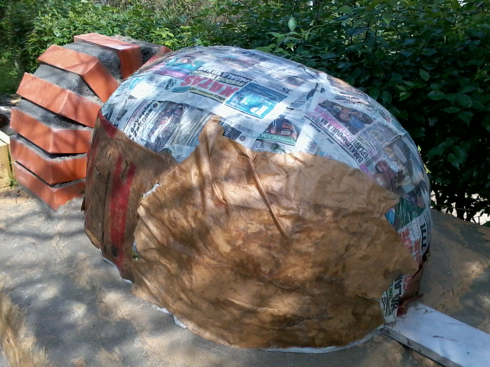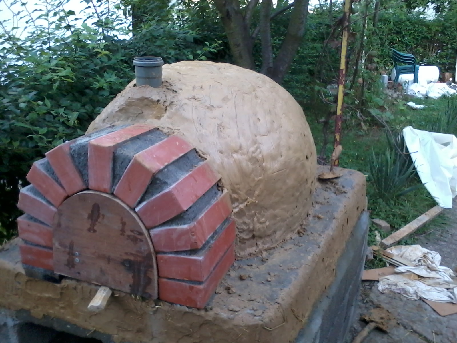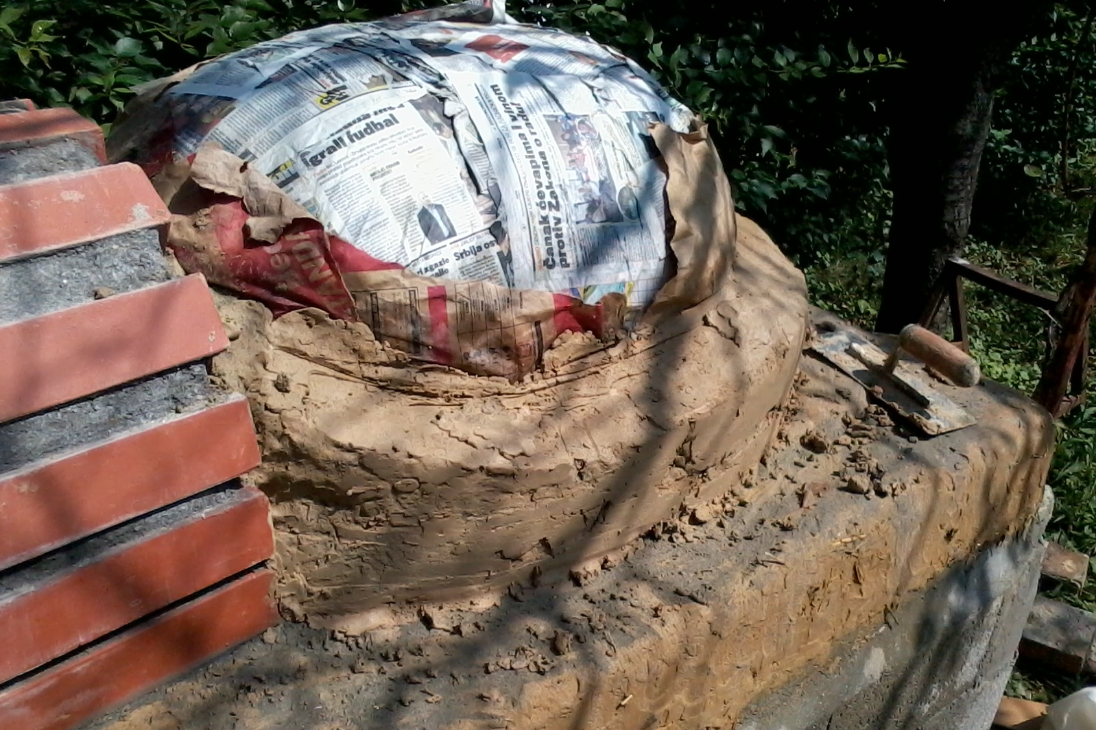 Pokrivam i najlonom i mokrim carsavima ali i otkrivam cim je lepse tj oblacnije vreme.Znaci to je neminovno da puca glina pri susenju.Neznam koliko mogu da dopustim da puca a da neporemeti geometriju peci i neznam mogu li popunjavati glinom recimo tecnom.Inace osnova peci je radjena mesavinom sa slamom,a i sledeci izolacioni sloj se radi sa velikim ucescem slame.Poslednji sloj bi koliko sam razumeo trebalo da sadrzi krec gaseni zbog uticaja atmosverskih padavina.evo i par slika kako je do sada tekla izgradnja ove peci .