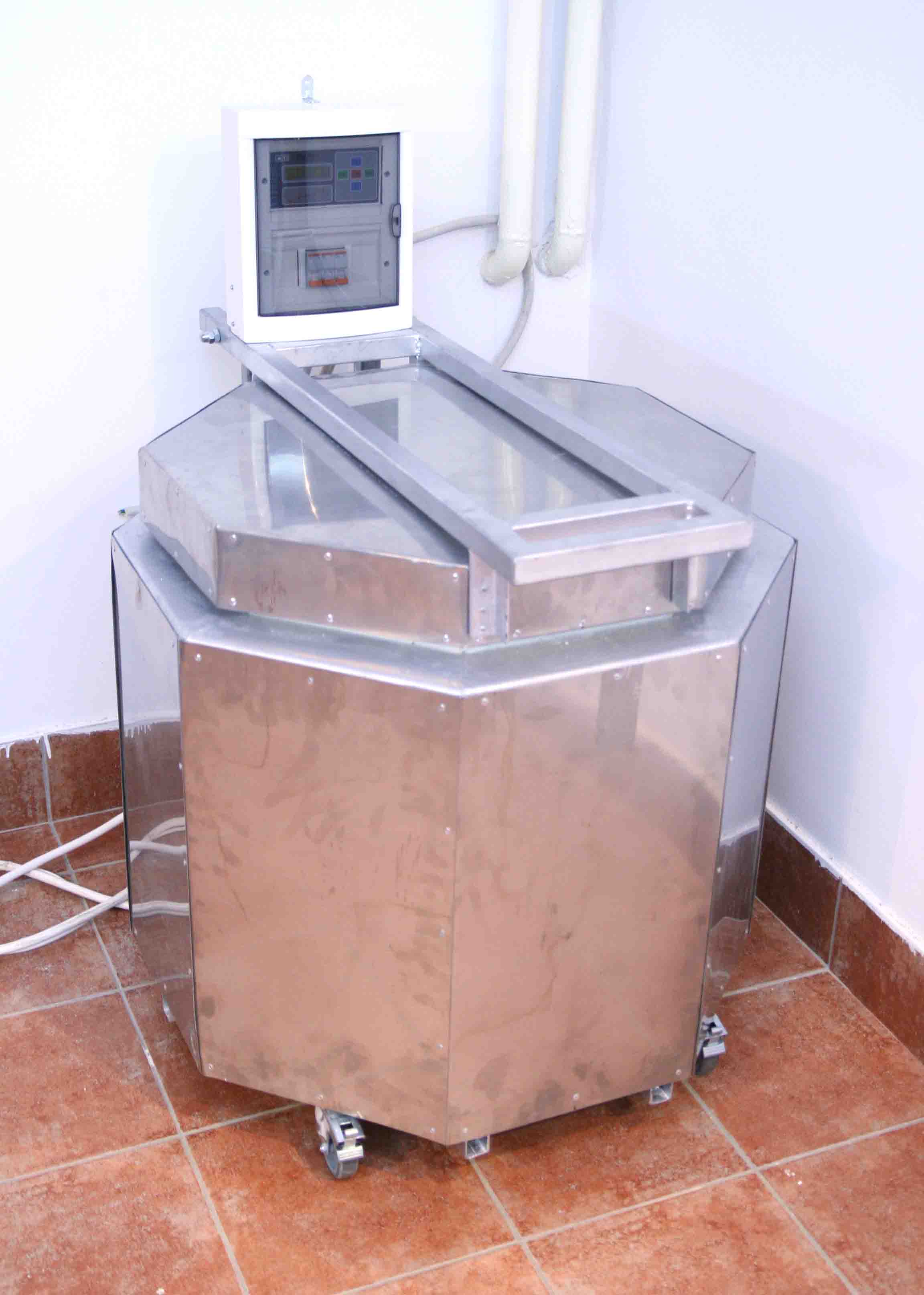 На седмој фотографији виде ручке којима се горњи део пресе и горњи алат спушта у доеи и на тај начин глина се утискује, квечује у калуп, а вишак избацује напоље. Колико видим ланац не стоји на свом месту и то би требало наместити да би преса могла да се користи. На четвртој фотографије се са десне стране види исти такав ланац који служи да се преса равномерно спушта, али колико се мени чини погонски ланац није где треба. Дакле треба проверити шта и како преса ради.