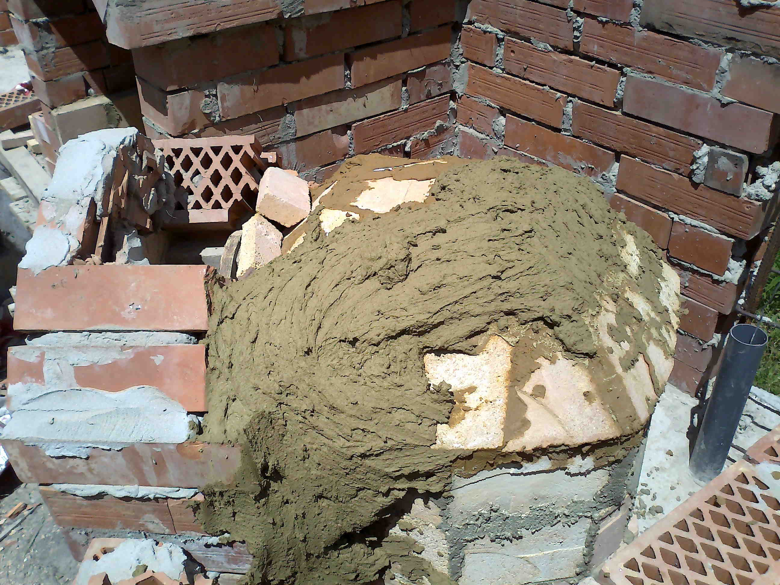 Ne znam kako su ljudi ranije rešavali ovakve probleme, da se ne pravim pametan, možda bi mešavina glina-seno-slama bilo rešenje ili možda i jedino, ali verujem da bi sa parcijalno pečenim delovima stvar bila bolja.