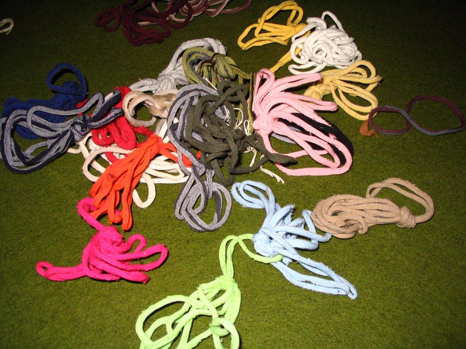 Jos jedan savet- ako nadjes negde ostatke od pamucnih carapa (uglavnom su u boji) obavezno kupi! S njima se mnogo lakse radi, i nemas brige oko skupljanja osnove (na to OBAVEZNO PAZI), jer ove najlon carape su malo vise problematicne, a uostalom ono sto je takodje dobro- jeste- ne moras da se mucis sa farbanjem (najlonke su uvek "vristece" bele)!