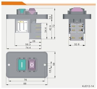 Cirkular je EINHELL RT-TS 1725U, prekidač je magnetni KJD12-14 sa 6 kontakata sa kojima situacija proverena bez napona stoji ovako: 1-2 odvojeni, 3-4 odvojeni, 5-6 spojeni. Imeđu 2 i 4 otpor 50K oma, tako da pretpostavljam da je tu "napajanje" (signal) kalema releja. Kad se pritisne start (dugme "1") takođe bez napona jer nisam ništa priključivao, situacija je sledeća: 1-2 spojeni,