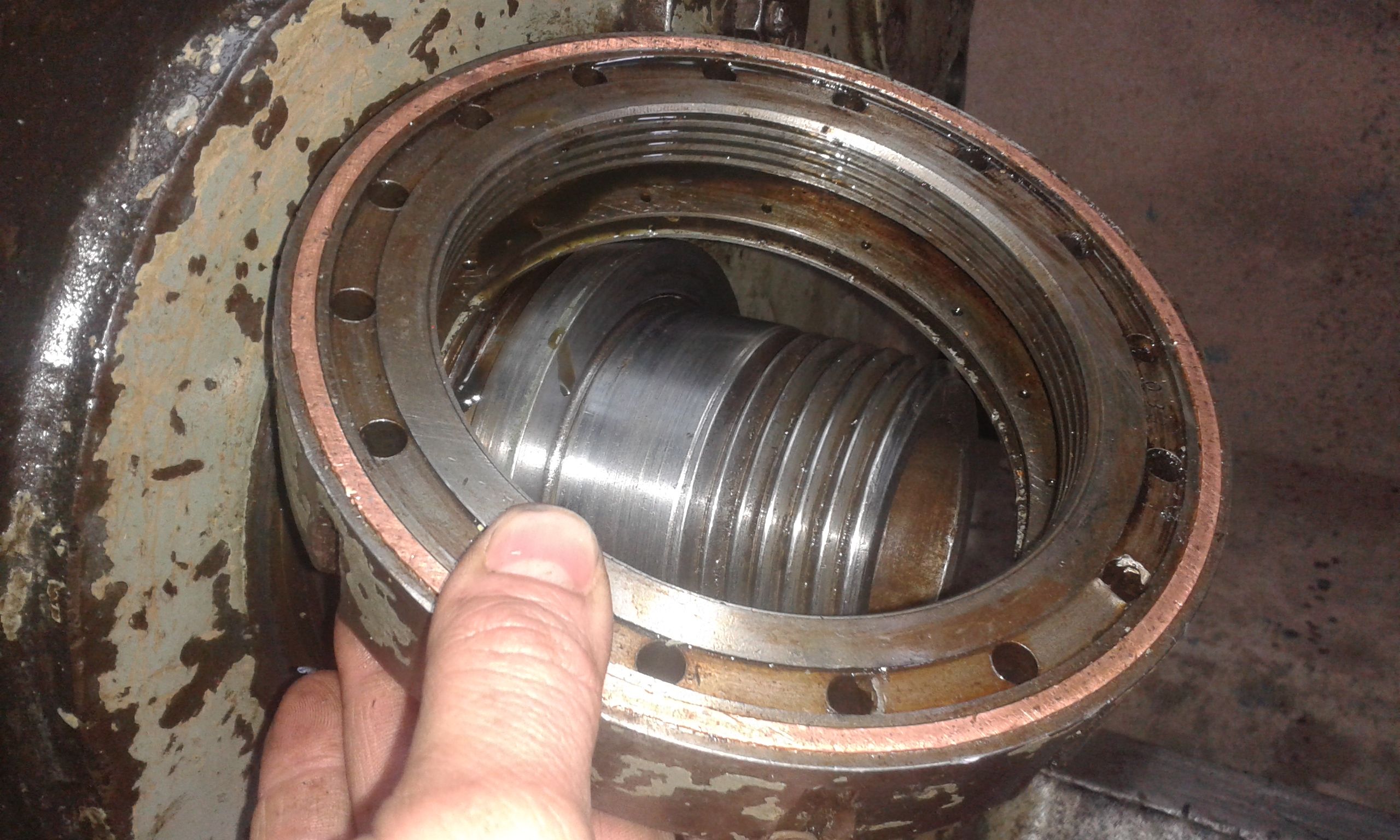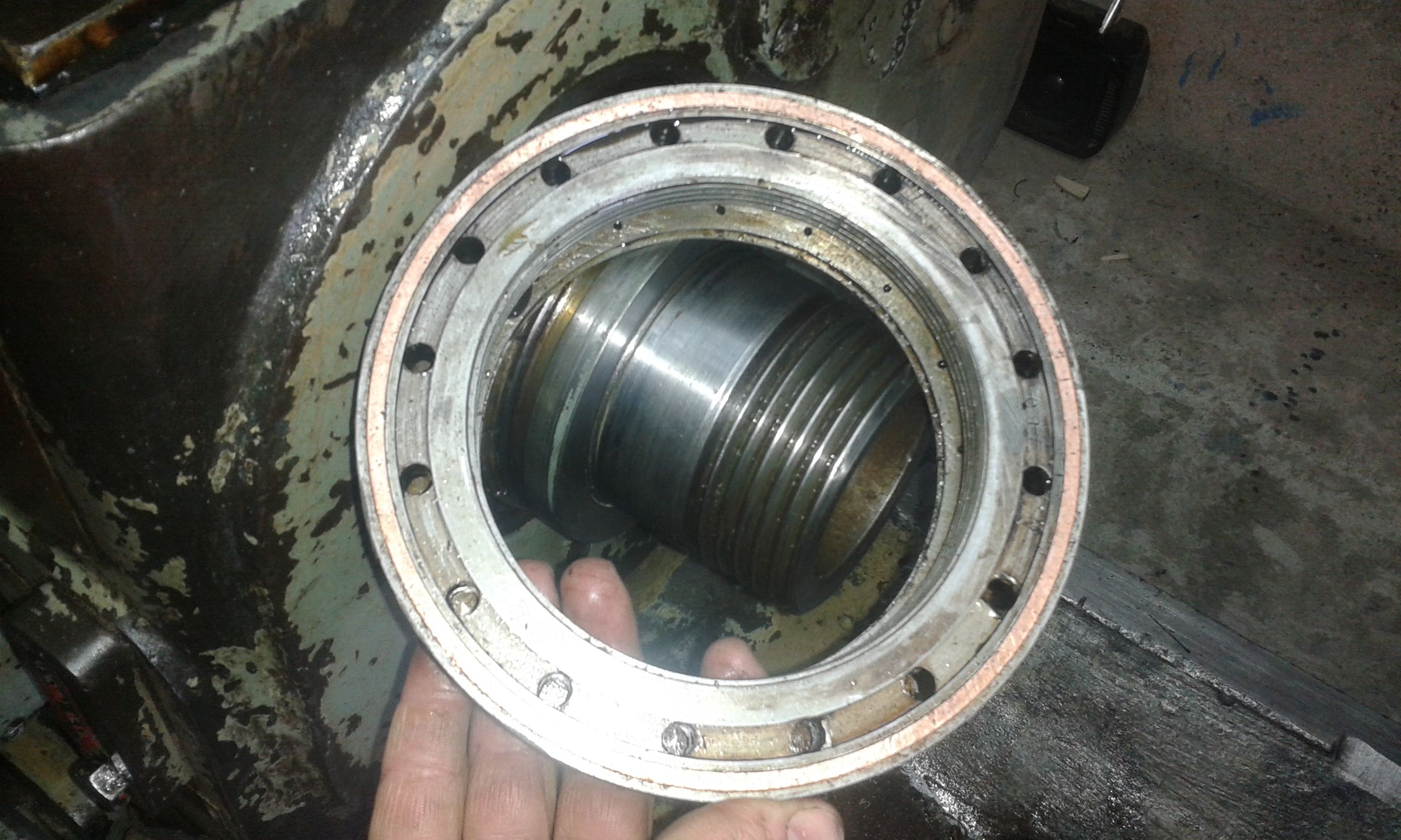 Stavio sam upravo sada O-prsten gumen bas lepo zaso u onaj tesnji kanal jer onaj siri kanal ima dosta rupica za odvod ulja pa pretpostavljam da u njemu ne ide nista a i ujedno je malo udaljen od osovine to jest vretenastog ispupcenja kao sto se vidi na zadnjoj slici.Lepo navreto zatego.bas lepo zaptivka nalegla ALI opet suzi.Gumica se prilikom navrtanja bas lepo ispresovala,nalegla na osovinu...Naspo ulje i vrlo malo suzi.Ali dosta da namokri bezveze,da uprlja.Najvise sto mrzim to je kapanje ulja ili vode.Pa se razmisljam da li da stavim za nijansu siri poprecni presek PRSTENA-SNURA....Ali to mi nije najveci problem kod njega...to je da kazemo potrosnji materijal koji se menja,najveci problem je tabela navoja koja se izgulila prilikom stavljanja raznoraznog alata na njoj...Takvi su majstori,jbg....e za to mi treba veoma velika pomoc.Zato mi treba pomoc oko pronalazenja ovoga struga,da pronadjem tabelu navoja....Doduse ujedno i da resavamo zajedno problemi i iznalazimo razna resenja....