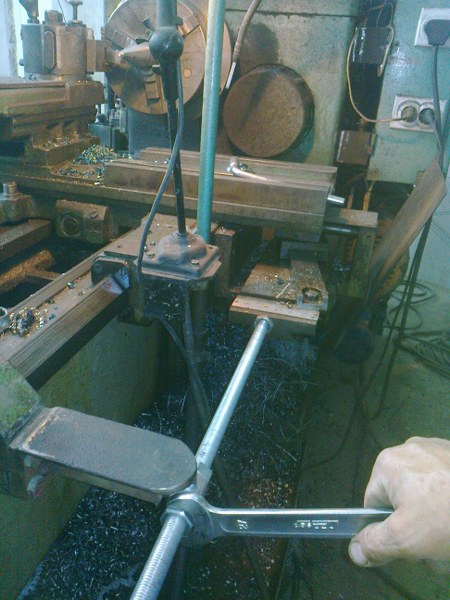 Ostao sam dužan pojašnjenje u vezi konusne letve.Kao i sva genijalna rešenja i ovo oko letve je rešeno na relativno prost način.Špingla poprečnog suporta je napravljena iz dva dela koji klize jedan u drugi,negde na dve kajle a negde na kronerima.Tako je omogućeno da vrh noža putuje po pravcu letve a nonijus stoji a opet nonijusom sasvim normalno španujemo i vatamo meru.