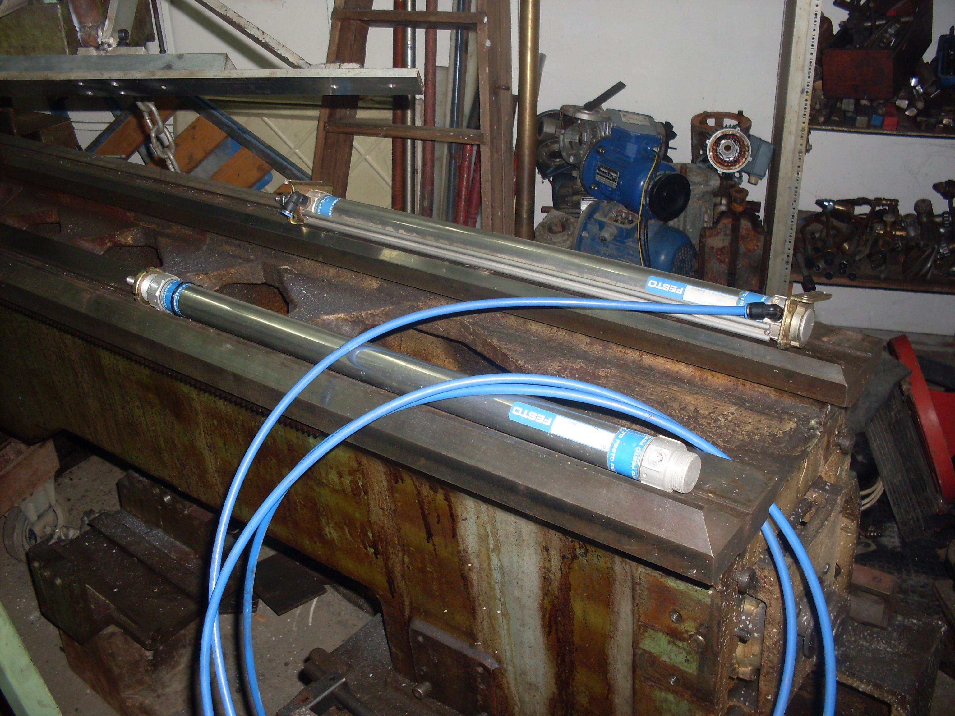 Zamislio sam da pomeranje uzvedem pneumatskim klipom a nalivanje vodom, pumpom iz sabirnika. Na stopalo letve bih zalepio vodobrusnu šmirglu, najpre najgrublju koju nađem pa finiju u etapama.