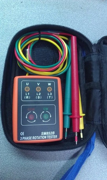 Ovo se koristi za odredjivanje smere motora tako sto se poveze na 3 faze i u donjem redu ima CW da je desni smer, a CCW da je levi smer u odnosu na kazaljke na satu obrtanja. U gornjem redu je indikacija prisutnosti tri faze da li neka nedostaje. Kod vecih masina i motora se ne moze tako ispitivati smer povezivanje pa promenom faza jer je pitanje dal se moze raskaciti i time se rizikuje da se polome zupcanici itd nego mora se posedovati ovaj uredjaj. Smer desni je kad gledate motor pa u nastavku izlaz osovine i kad se ista okrece u smeru kazaljki na satu.