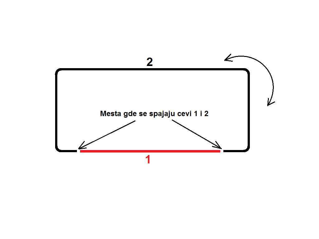 Cevi 1 i 2 su istog prečnika od pola cola sa debljinom zida od 2,65mm.