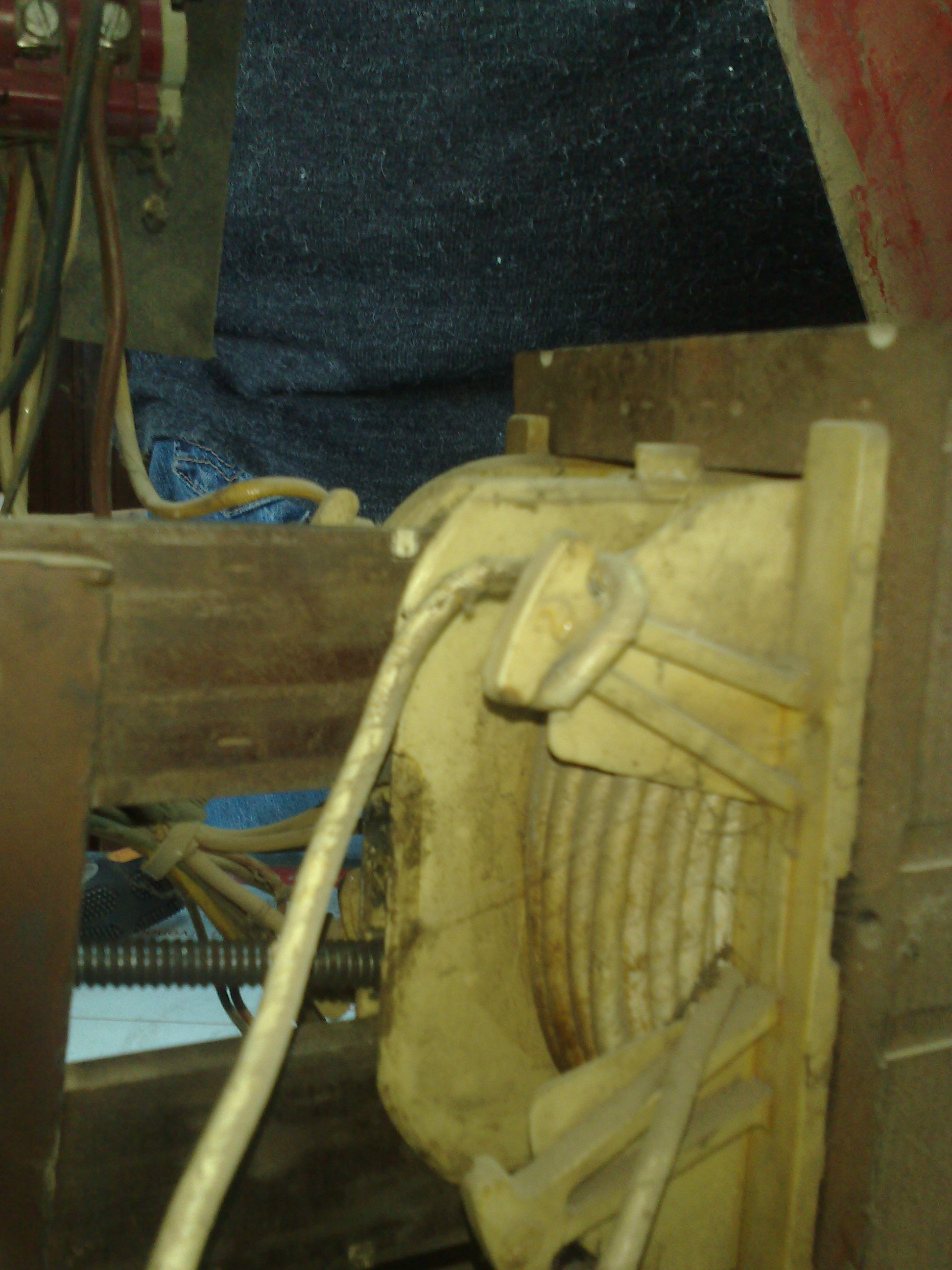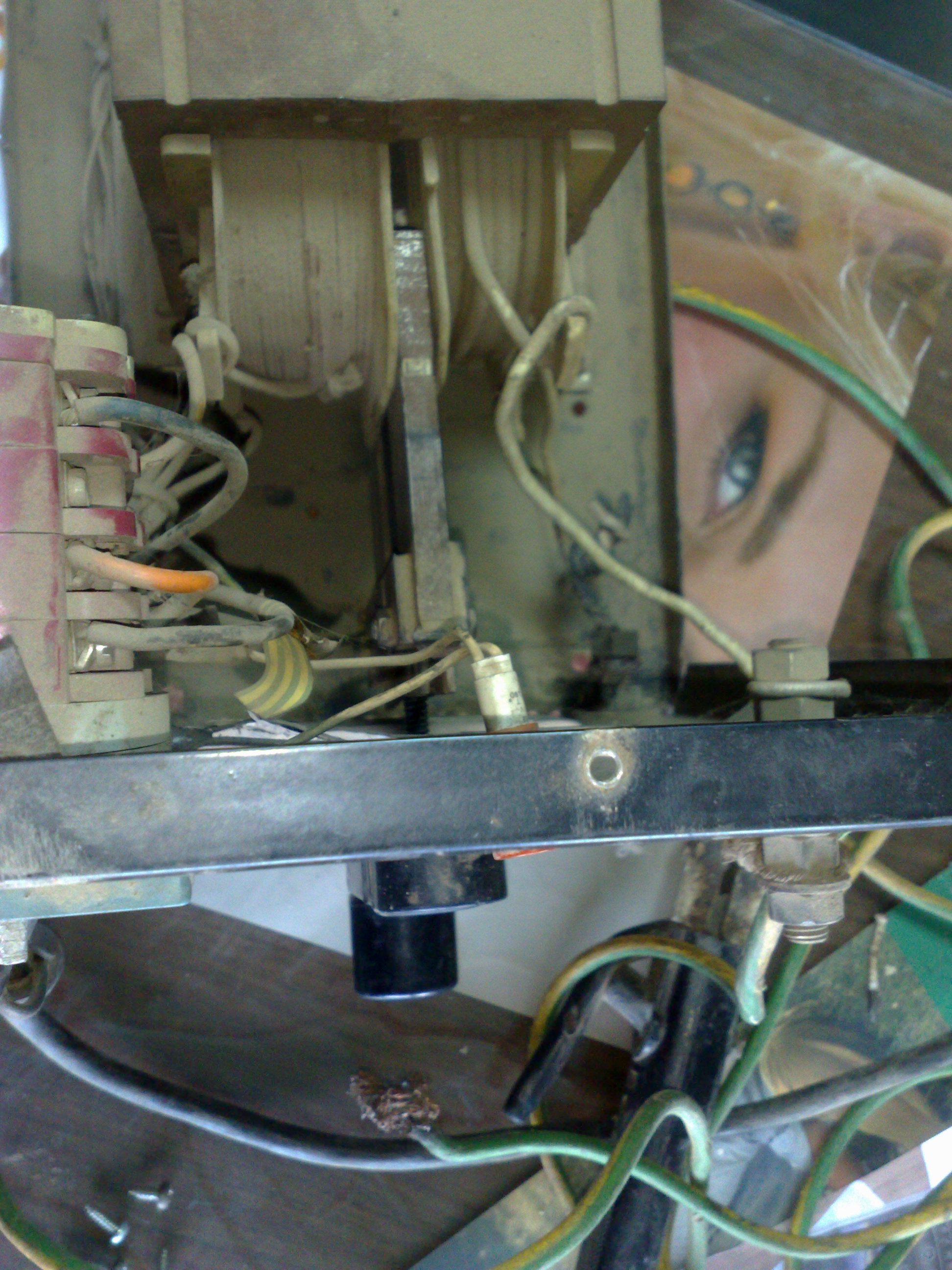 Aко видим добро овде се релуктанса трафоа мења преко феромаг плоче која се вози на шпингли и тако увлачи и извлачи. И вероватно је други крај који држи шпинглу тамо унутра оштећен (то што су поменули да је заливено) па плоча не може више да се вози. Шта се дешава кад окрећеш преклопник за подешавање струје, да ли даје отпор, то јест не може да се крене више у лево (или десно зависи какав је навој)?