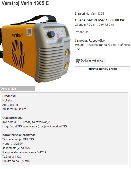 izgleda sasvim OK. Inace ovaj aparat je poznat, prepakuje ga barem 6-7 sto evropskih sto USA brendova, nekada samo menjajuci boju kucista i brend a nekad samu elektroniku stave u svoje kuciste. Ali dovodi u zabludu sa intermitencama. Kada se intermitence na 160A preracunaju na tipicnu srpsku i evropsku 16A instalaciju, onda je intermitenca na 160A = 25%. Ovaj aparat je inace sa IGBT invertorom koji su se pokazali mnogo pouzdanijim od MOS-FET tranzistora u starijim aparatima.