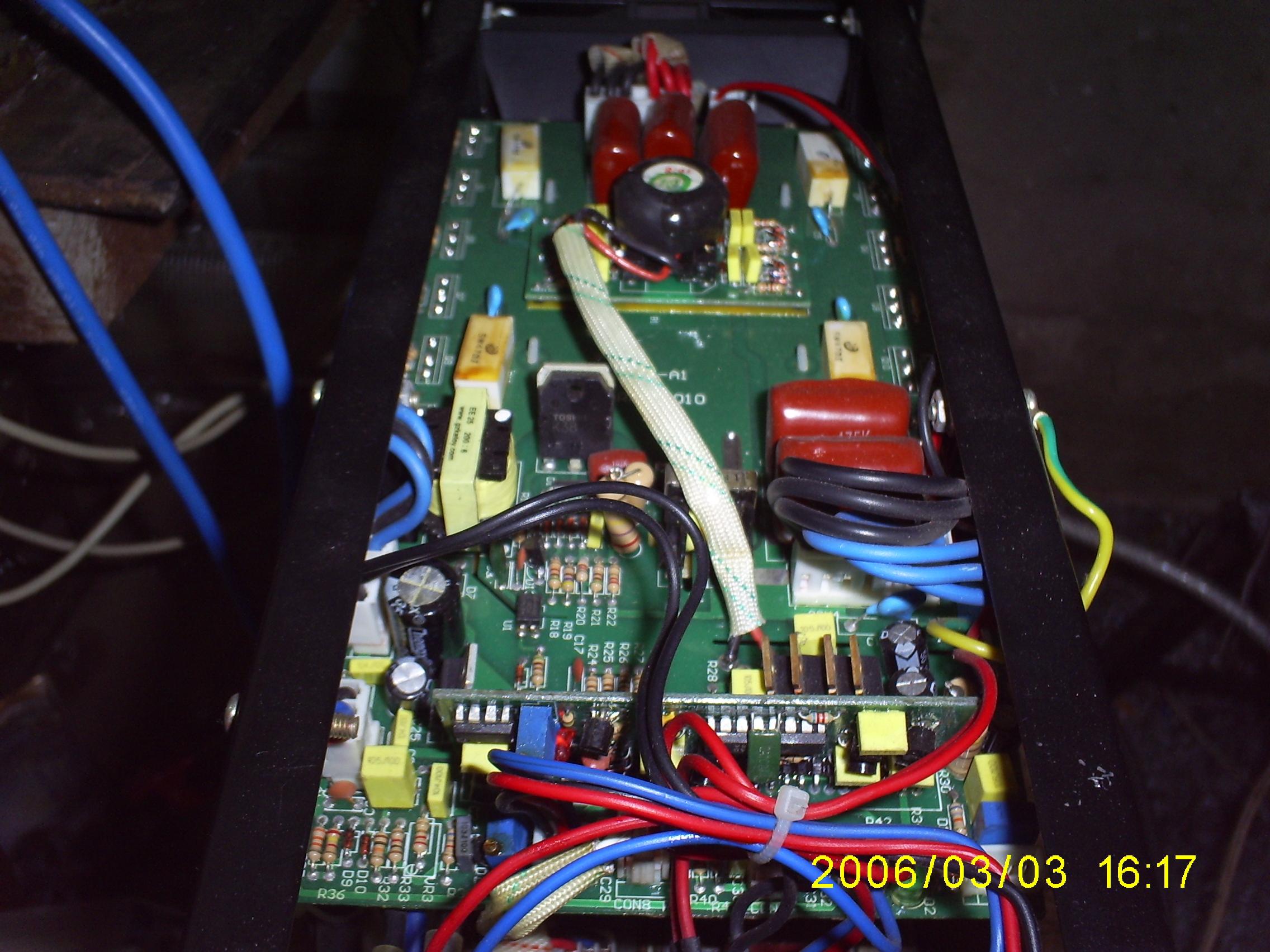 3-gornja ploca-glavna je sa igbt tranzistorima,add-on ploce su:u prvom planu logika (diskret i nekoliko integralaca opste namene,nema mikroprocesora),u pozadini je gdt (pobudni trafo za gejtove igbt-a) i nesto pratece elektronike.Generalno,ove ploce kinezi sa manjim izmenama koriste u ogromnom broju raznih brendova aparata.