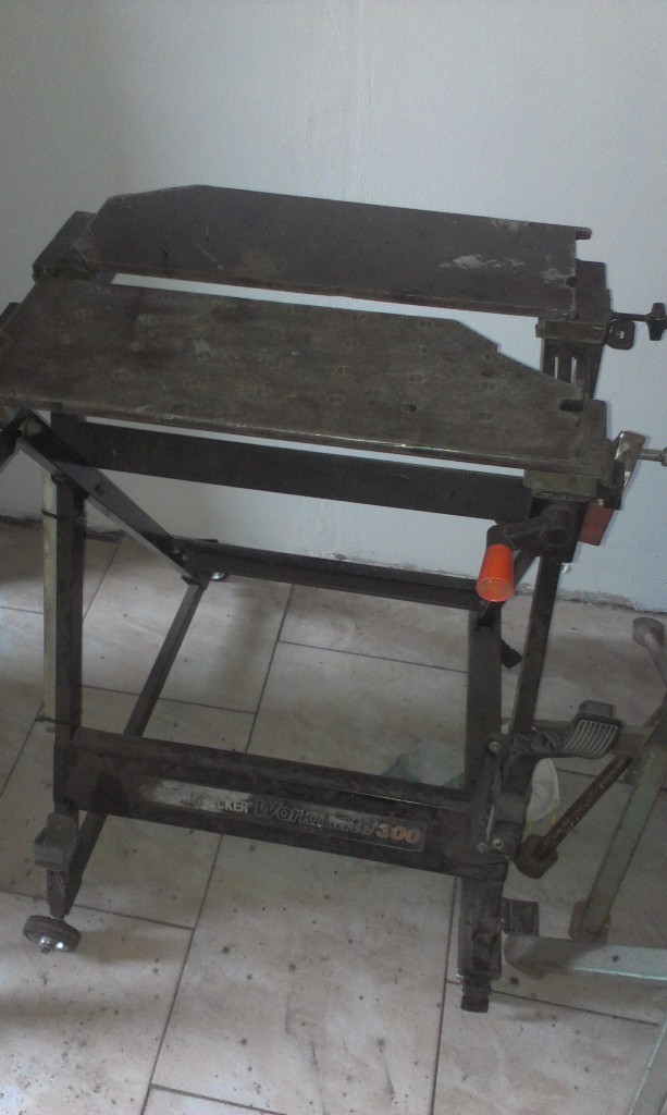 Ево да мало додам.Заваривачки сто проширив уз додатке за веће послове од блекдекер стола, 10мм лим где је један са перфорацијом фи10 и на столу се налази папучица гаса од аута (син је мењао због сензора те сам је искористио), у коју сам убцио микропрекидач који је каблом повезан са апаратом и служи за покретање тиг секвенце коленом када се за птребе заваривања седи за столом.Трећа слика је стари добри гер за дрво који сад са танком плочом од 180мм сече металне цеви, највише када је потреба сечења под углом.За људе теренце је права ствар.