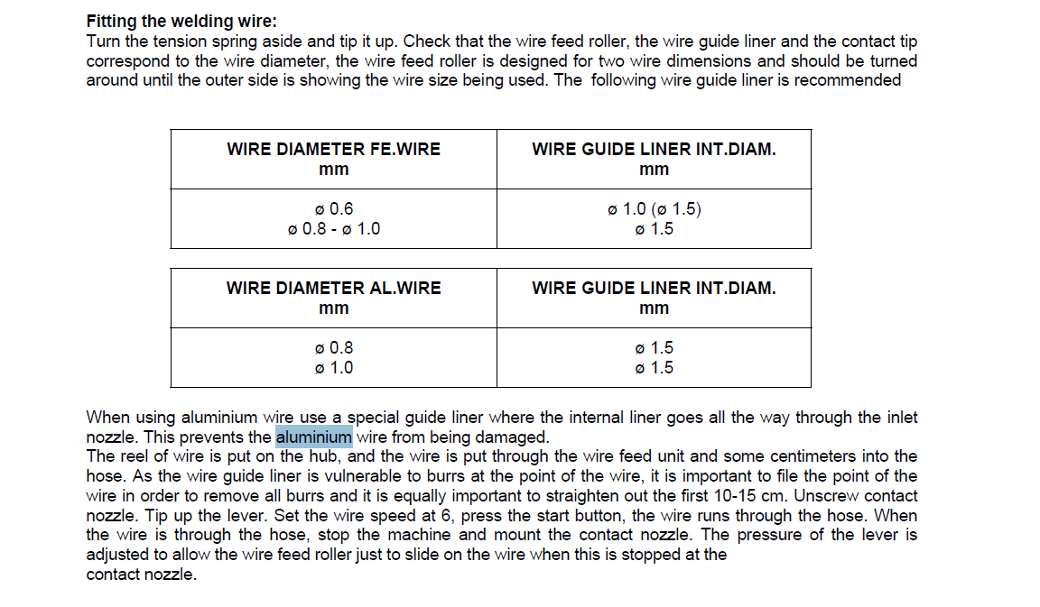 Sve te što je prepourčeno je u stvari vrlo uopšteno i ne mora da znači da će vama ikako odgovarati . Naravno da ne nećete staviti voltažu na minimimum a brzinu žice na max i obratno jer tu neće biti zavarivanja . Ali recimo meni zbog verziranosti odgovara veća brzine žice nego vama kao početniku . Sve ćete to otkriti kroz praksu a ki kako vam šta leži . Nemojte se opterećivati podacima i teorijom a pogotovo " programiranjem " aparata jer za tako nešto nema ni potrebe niti vaš aparat omogućava tako nešto . Za AL vam treba i poseban točkić i teflonski bužir u polikablu . i argon za zaštitnu atmosferu .