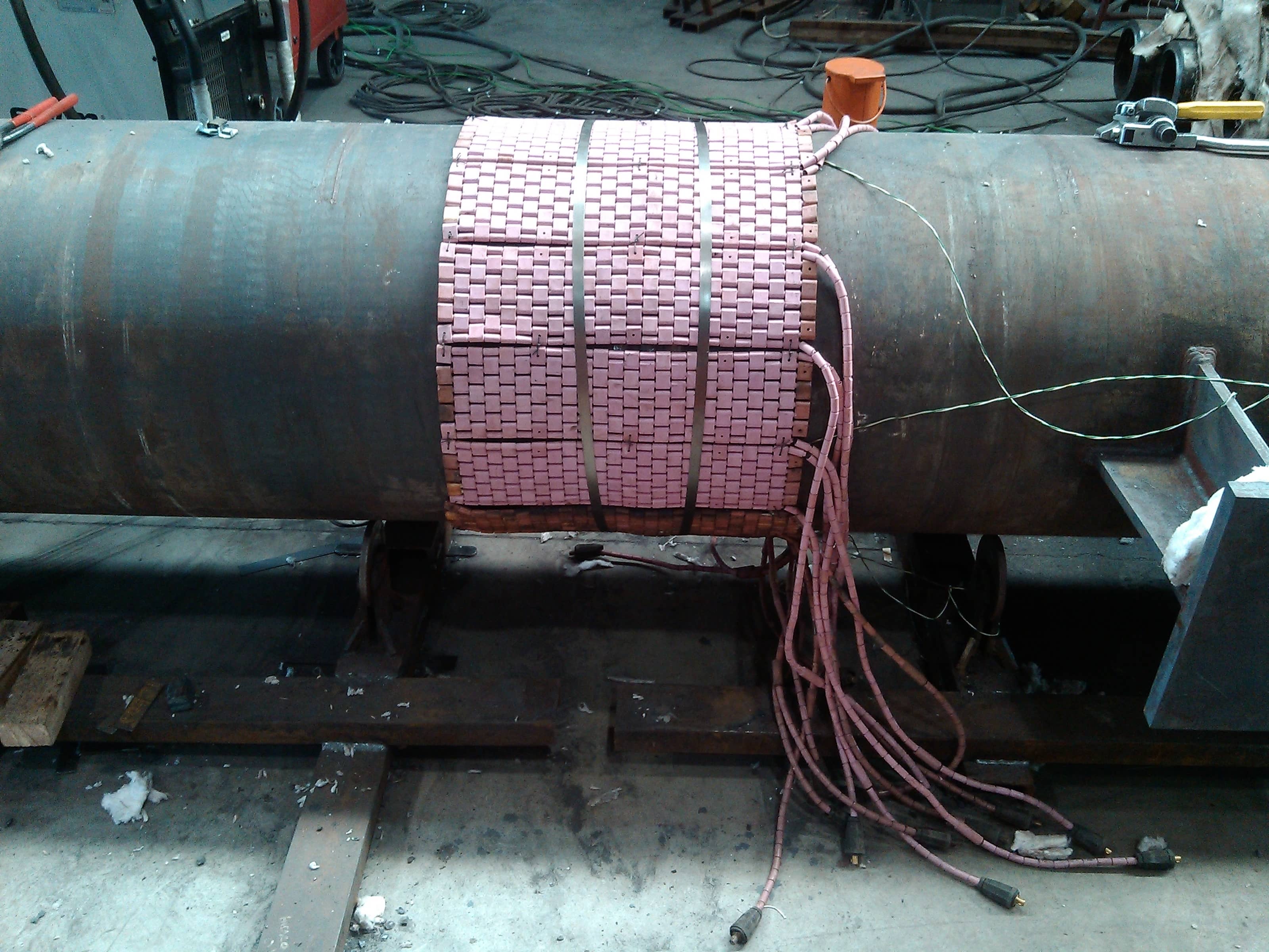 Slika 1. elektrootporni grejači postavljeni na zavareni spoj radi lokalnog žarenja nakon zavarivanja