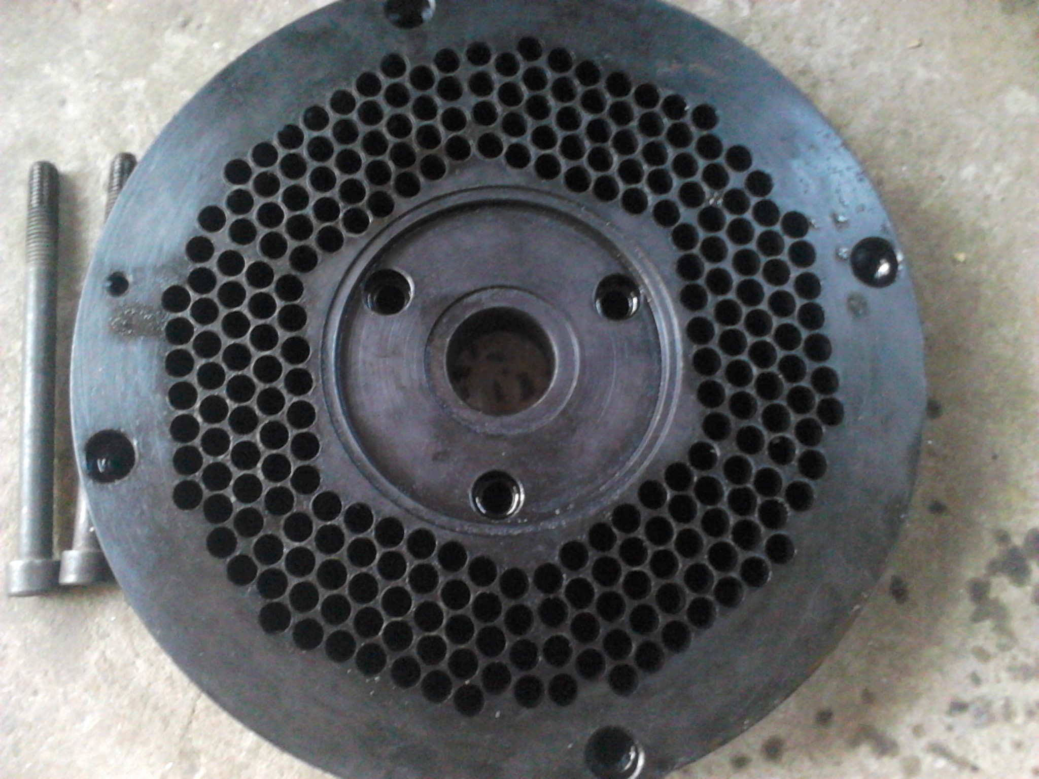 ) danas stigla matrica sa cementacije, i odneo sam rolere na odpustanje jer mi je u planu da ih prepravljam! kao sto sam i pisao sada je zub 9mm a medjuzublje 6mm pravljeno sa glodalom za zupcanike 4mm u dubinu tako da se kanal sirio od dna prema vrhu. E sad mi je u planu da ih prestruzem i napravim zub 5mm a medjuzublje 2mm sa testerastim glodalom 3.5mm u dubinu sta mislite dali je to dobra kombinacija? Razlog prepravke je taj sto mi se cini da su kanali bili presiroki i mnogo je klaparalo i treslo celu presu kada je radila! evo i slicice matrice koja je 44mm debljine sa fi 7 rupama i konusima na 8.5mm sa obe strane koja je pravila ekstra pelet od sojine slame