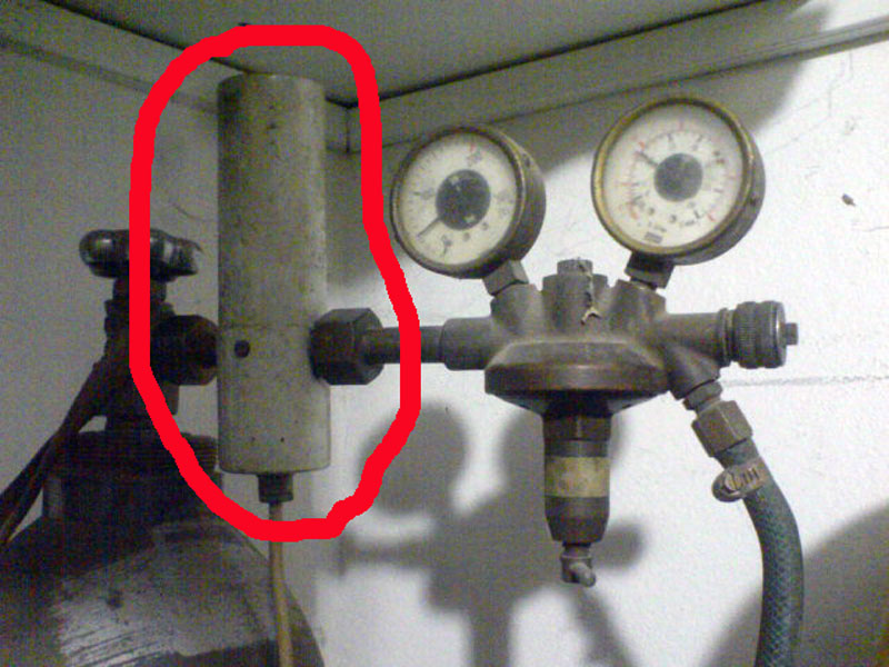 Grejač se montira na izlaz CO2 boce, a na njega se montira manometar.Napajanje grejača ide iz samog aparata ima izvod za grejač.Nije mi sad pri ruci aparat, ali ću slikati da se vidi kako to izgleda.Tako da se ugljen dioksid zagreva pre ulaska u manometar što sprečava zaledjivanje, kod većeg protoka.